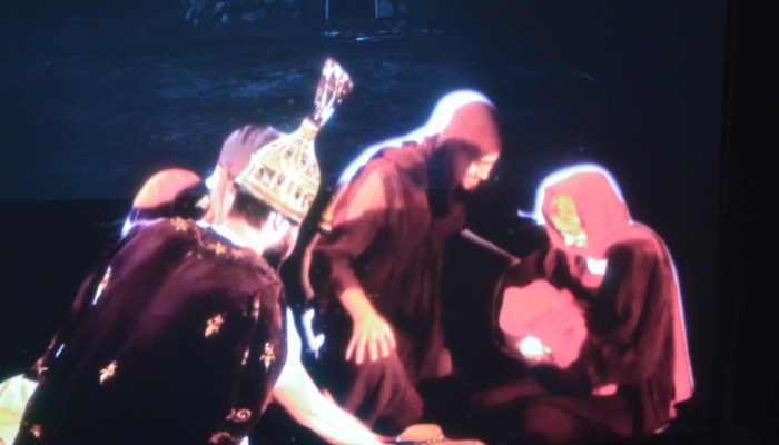 • Η χαρτογραφική προβολή σε όψη του κτιρίου του Παλαιού Τελωνείου και στην οροφή τη στοάς που οδηγεί στην οδό Αφεντούλιεφ. Η τεχνολογία επιτρέπει την ιδεατή διαφανοσκόπιση του κτηρίου, την απεικόνιση δρώμενων στα παράθυρά του, και την εντυπωσιακή ανύψωση του ανάγλυφου της τοιχοποιίας του.