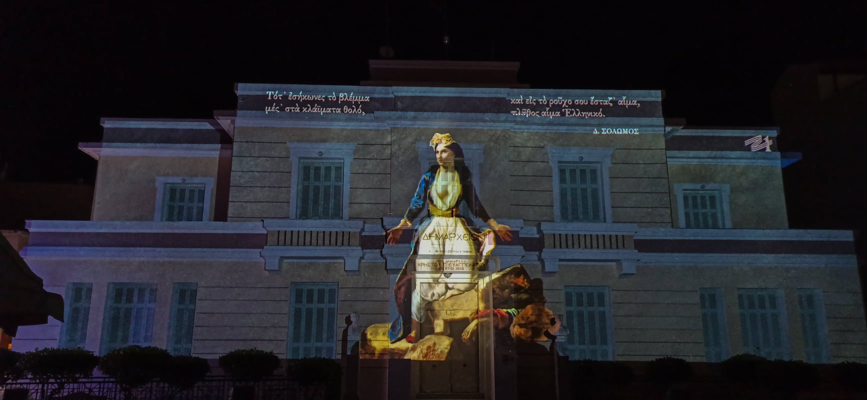 Η προβολή έγινε ταυτόχρονα στις όψεις και των 18 επιλεγμένων κτιρίων, με προεξάρχον το κτίριο της Βουλής των Ελλήνων. Εκτός από την ιστορία της Επανάστασης, οι προβολές συνδέονται και με στοιχεία της νεότερης ιστορίας κάθε πόλης. Πρόκειται για το μεγαλύτερο εγχείρημα projection mapping που έχει γίνει ποτέ στην Ελλάδα, ενώ η δημιουργία του καλλιτεχνικού αφηγήματος του υλικού και η προσαρμογή του πάνω στα κτίρια έγινε από το Εργαστήριο Μεταβαλλόμενων Ευφυών Περιβαλλόντων (TUC TIE Lab) της Σχολής Αρχιτεκτόνων Μηχανικών του Πολυτεχνείου Κρήτης.