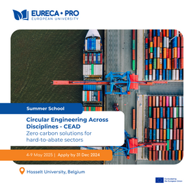 Το Θερινό Σχολείο Circular Engineering Across Disciplines Summer School (CEAD) για το 2025 έχει θέμα “Zero Carbon Solutions for Hard-to-Abate Sectors” και θα διεξαχθεί στο Hasselt University στο Βέλγιο, εταίρο του EURECA-PRO, από την Κυριακή 4 Μαΐου 2025 (βράδυ) έως την Παρασκευή 9 Μαΐου 2025. Θα ακολουθήσει και ένα virtual (online) τμήμα του προγράμματος, το οποίο θα ολοκληρωθεί έως τις 16 Μαΐου 2025. Το πρόγραμμα θα διεξαχθεί εξ ολοκλήρου στην Αγγλική γλώσσα.