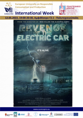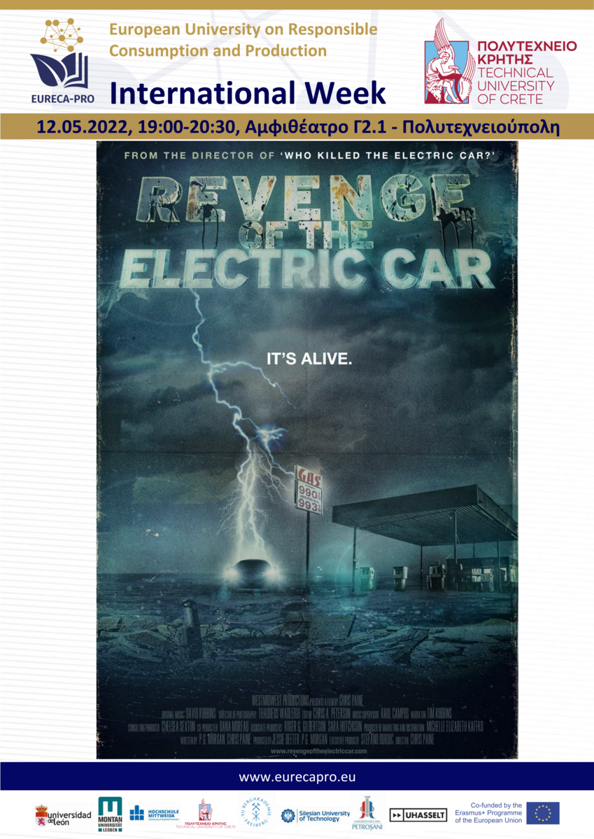 Μεταξύ των εκδηλώσεων της Διεθνούς Εβδομάδας EURECA-PRO περιλαμβάνεται και η εκδήλωση «Green Movie Night», όπου και στις 8 πανεπιστημιουπόλεις θα προβληθεί η ταινία-ντοκυμαντέρ "Revenge of the Electric Car".
