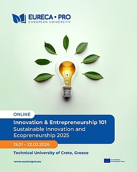 🎓 Πρακακολουθήστε μια πρακτική εισαγωγή στην Καινοτομία & Επιχειρηματικότητα (Innovation & Entrepreneurship - I&E)! Στο μάθημα I&E 101: Sustainable Innovation & Ecopreneurship, εμπνευσμένοι ομιλητές μοιράζονται τις δικές τους ιστορίες νεοσύστατων επιχειρήσεων σχετικά με το τι πυροδότησε τις ιδέες τους, τι πήγε σωστά (και τι λάθος) και τι έμαθαν στην πορεία. Θα συνδεθείτε με συμφοιτητές και επιχειρηματίες σε όλο το EURECA-PRO και πέρα από αυτό, θα ανταλλάξετε ιδέες και θα εξερευνήσετε πραγματικές ευκαιρίες I&E που συνδέονται με μεγάλες προκλήσεις, όπως η Καθαρή Ενέργεια, η Βιομηχανία 4.0, η Βιώσιμη Υγεία, η Κυκλική Οικονομία και η οικοδόμηση μιας Βιώσιμης & Δίκαιης Κοινωνίας. Θα μάθετε πώς να μετατρέπετε τις δικές σας ιδέες σε δράση, να αναπτύσσετε πρακτικές δεξιότητες και να ανακαλύπτετε τρόπους συνεργασίας με εταίρους του κλάδου για να δημιουργήσετε αντίκτυπο στον πραγματικό κόσμο.