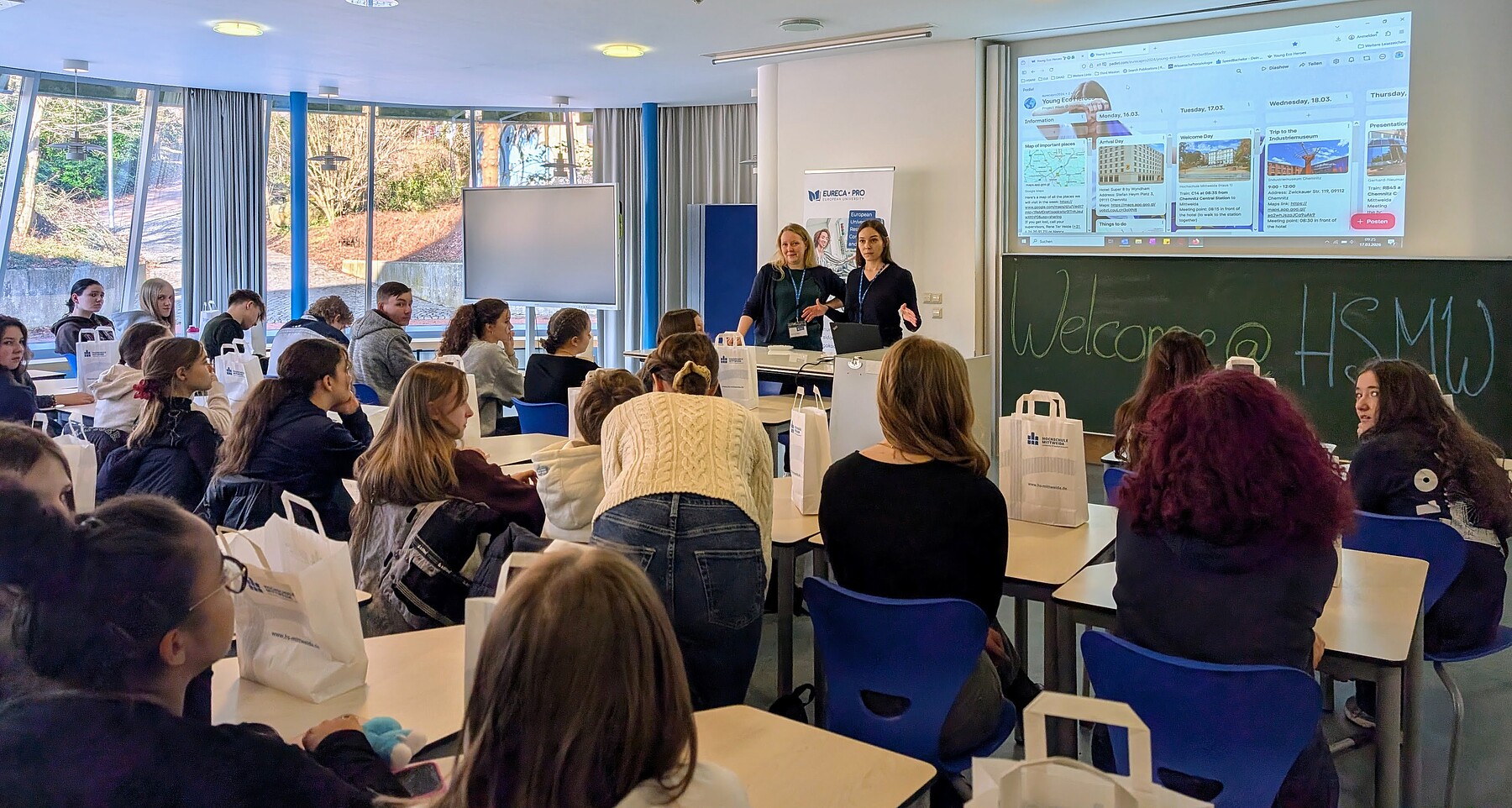 Η κορύφωση του προγράμματος πραγματοποιήθηκε την εβδομάδα 16–20 Μαρτίου 2026 στο Πανεπιστήμιο Εφαρμοσμένων Επιστημών του Mittweida στη Γερμανία, όπου οι μαθητές συναντήθηκαν διά ζώσης και συμμετείχαν σε ένα πλούσιο πρόγραμμα εκπαιδευτικών δραστηριοτήτων με επίκεντρο τη βιωσιμότητα. Μέσα από εργαστήρια, παρουσιάσεις και ομαδικές δράσεις, διερεύνησαν πρακτικούς τρόπους συμβολής σε έναν πιο βιώσιμο τρόπο ζωής, ενώ παράλληλα είχαν την ευκαιρία να γνωρίσουν από κοντά το πανεπιστημιακό περιβάλλον και να περιηγηθούν στους χώρους και τα εργαστήρια του ιδρύματος. Μέρος του κόστους του ταξιδιού των μαθητών καλύφθηκε από το EURECA-PRO.