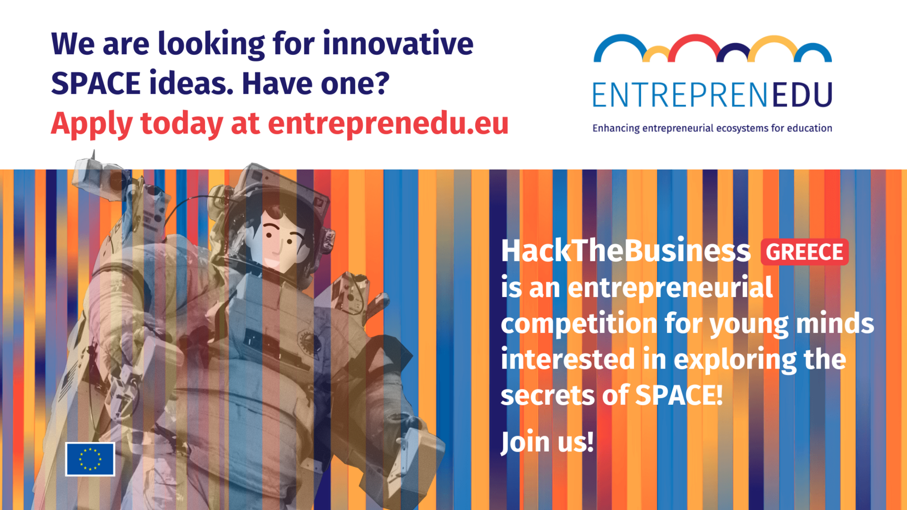 Με πρωτοβουλία του Corallia, την υποστήριξη της θερμοκοιτίδας του Ευρωπαϊκού Οργανισμού Διαστήματος στην Ελλάδα (ESA BIC Greece), του Ελληνικού Cluster Διαστημικών Τεχνολογιών και Εφαρμογών (si-Cluster) και του έργου ENTREPRENEDU, διοργανώνεται το “HackTheBusiness Greece”, ένας εκπαιδευτικός διαγωνισμός καινοτομίας και νεανικής επιχειρηματικότητας στον τομέα των Διαστημικών Τεχνολογιών και Εφαρμογών υπό την αιγίδα του Υπουργείου Ψηφιακής Διακυβέρνησης.