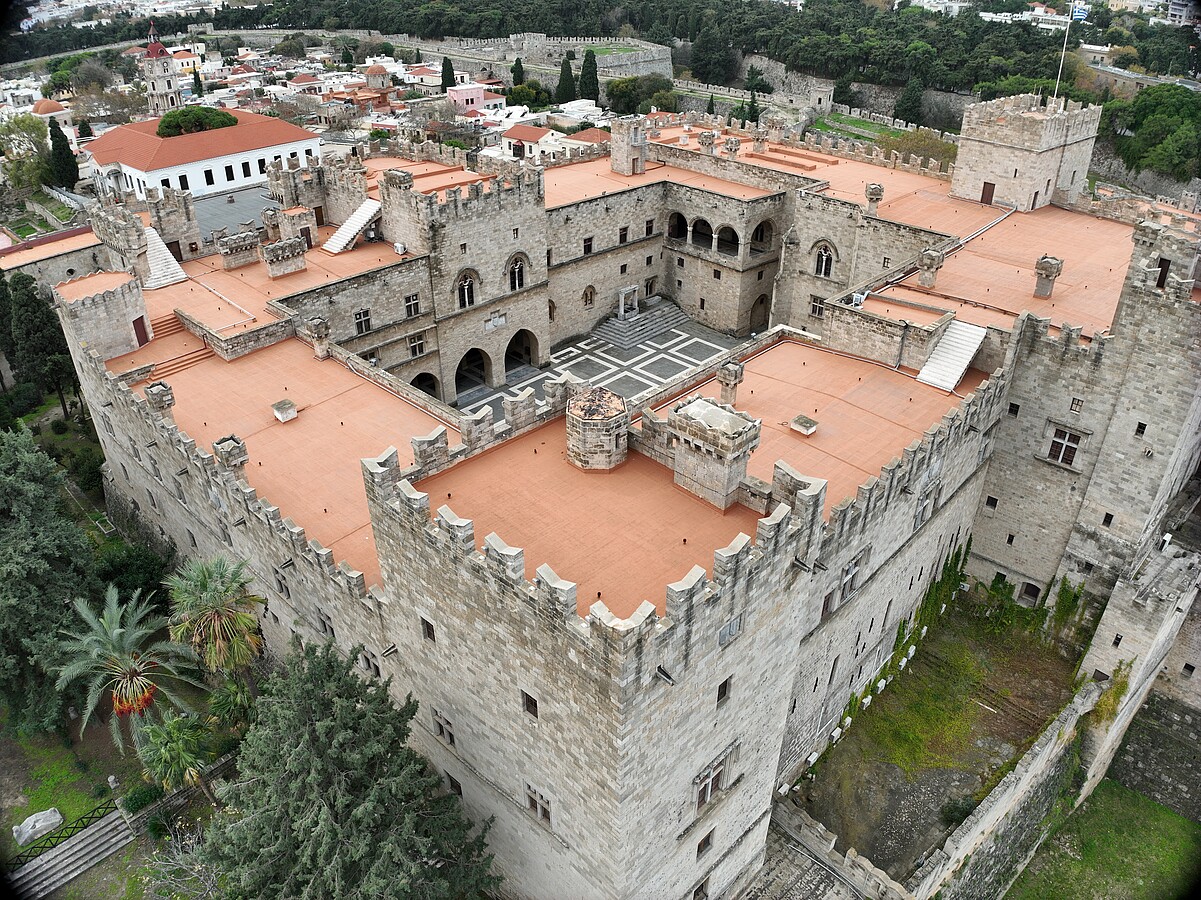 Το παλάτι, κατά τη διάρκεια των δύο αιώνων κυριαρχίας του τάγματος των Ιπποτών στη Ρόδο (1309-1522), υπήρξε έδρα και κατοικία του Μεγάλου Mαγίστρου και το κέντρο της ζωής του τάγματος των Ιπποτών. Το παλάτι, στη σημερινή του μορφή, είναι το αποτέλεσμα των εκτεταμένων εργασιών ανακατασκευής του από την ιταλική φασιστική διοίκηση, στην τελευταία περίοδο της κατοχής των Δωδεκανήσων από το 1937 έως το 1940. Οι επεμβάσεις των Ιταλών δημιούργησαν ένα πολύπλοκο σύνολο διακοσίων πέντε αιθουσών/δωματίων, για χρήση θερινού ανακτόρου του Ιταλού βασιλιά και του Μουσολίνι.