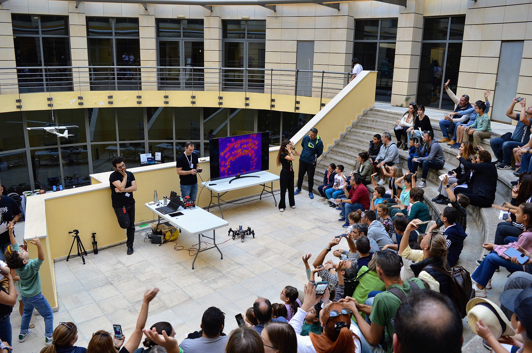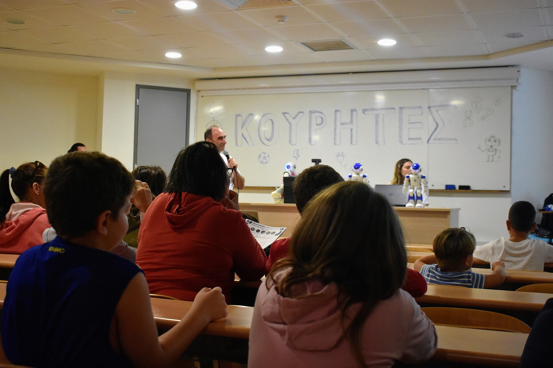 Στην Ημέρα Επιστήμης και Τεχνολογίας «Θέλμα Μαυρίδου» οι μικροί επιστήμονες αλληλοεπίδρασαν με μεγάλα ρομπότ, παρακολούθησαν εντυπωσιακές πτήσεις με drones, είδαν από κοντά τα μοναδικά αυτοκίνητα των φοιτητικών ομάδων TUCER και FSTUC και τα κύπελλα που έχουν κερδίσει στους αγώνες που συμμετέχουν, είδαν πόσο εντυπωσιακά μπορεί να λάμψει το σκοτάδι, δοκίμασαν εξοπλισμό εικονικής πραγματικότητας (VR), παρακολούθησαν ψηφιακό θέατρο σκιών, έμαθαν για το περιβάλλον, τις πυρκαγιές, την κλιματική αλλαγή και ήρθαν σε επαφή με τα μαθηματικά, τη χημεία, τη φυσική, τη μηχανική, την αρχιτεκτονική και άλλα γνωστικά αντικείμενα. Τους μικρούς επισκέπτες περίμενε και μια ωραία έκπληξη στο τέλος της περιήγησης, καθώς είχαν την ευκαιρία να δώσουν την πρώτη τους ραδιοφωνική συνέντευξη ως junior Επιστήμονες στη φοιτητική Ομάδα του Πολυτεχνείου Κρήτης Ράδιο Ένταση 93,5 FM.