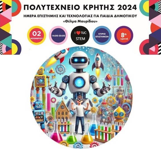 Το Πολυτεχνείο Κρήτης ανοίγει ξανά τις πόρτες του στους μαθητές της Πρωτοβάθμιας Εκπαίδευσης, το Σάββατο 2 Νοεμβρίου 2024 κατά τις ώρες 14:00-20:00 στην Ημέρα Επιστήμης και Τεχνολογίας «Θέλμα Μαυρίδου», όπου τα παιδιά θα έχουν την ευκαιρία να ζήσουν την επιστήμη και την τεχνολογία με έναν εντελώς νέο τρόπο!