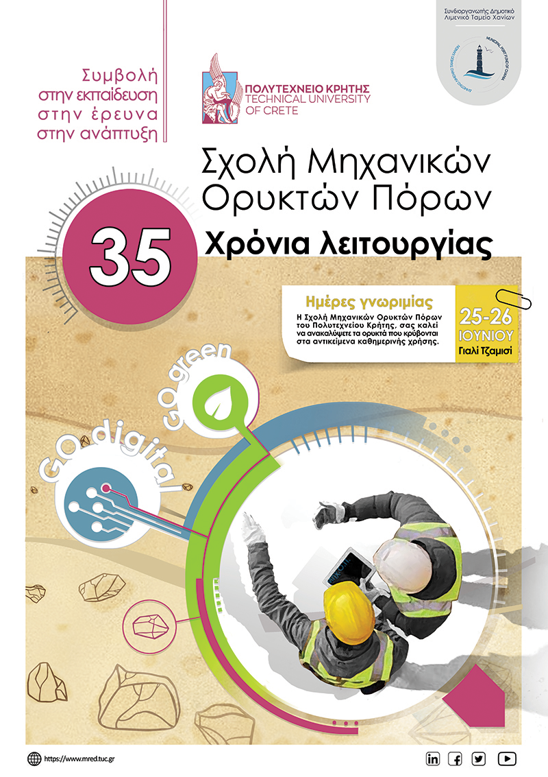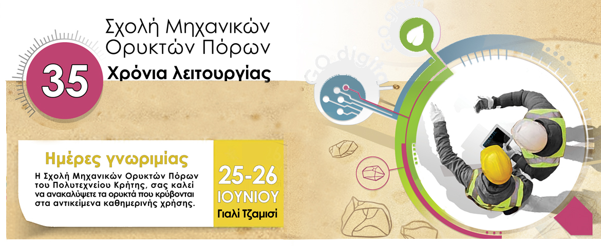H Σχολή Μηχανικών Ορυκτών Πόρων του Πολυτεχνείου Κρήτης στα Χανιά, ξεκίνησε τη λειτουργία της το 1987 και εφέτος συμπληρώνει 35 χρόνια λειτουργίας. Αποστολή της Σχολής είναι η εκπαίδευση Μηχανικών, ικανών να καλύπτουν ευρύ φάσμα επιστημονικών και τεχνολογικών δραστηριοτήτων που σχετίζονται με την αναζήτηση, εκμετάλλευση, επεξεργασία των ορυκτών πρώτων υλών, καθώς και η παραγωγή νέας γνώσης μέσω της έρευνας που διεξάγεται.