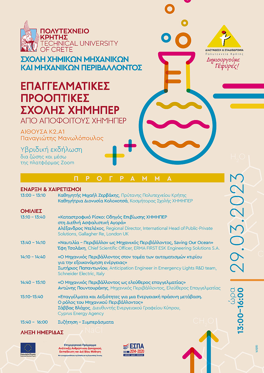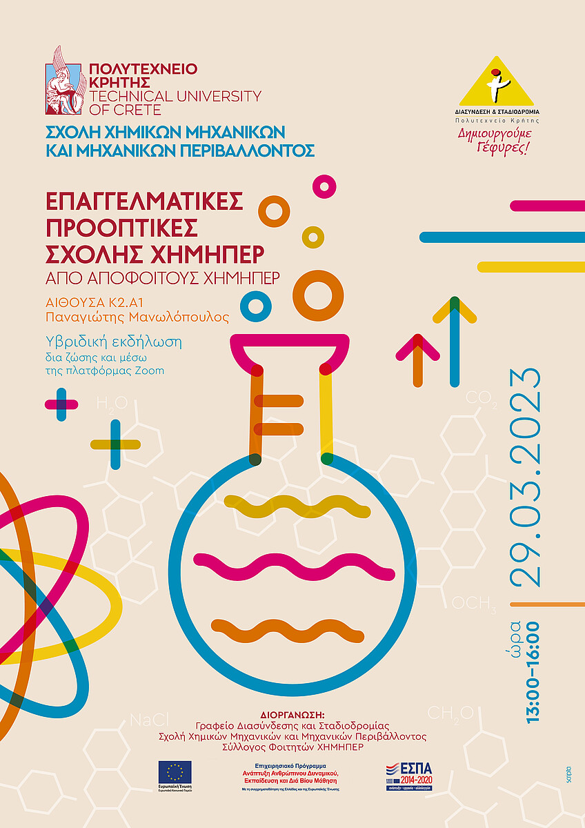 To Γραφείο Διασύνδεσης και Σταδιοδρομίας (ΓΔΣ), σε συνεργασία με τη Σχολή Χημικών Μηχανικών και Μηχανικών Περιβάλλοντος (ΧΗΜΗΠΕΡ) και τoν Σύλλογο Φοιτητών ΧΗΜΗΠΕΡ του Πολυτεχνείου Κρήτης, διοργανώνουν την