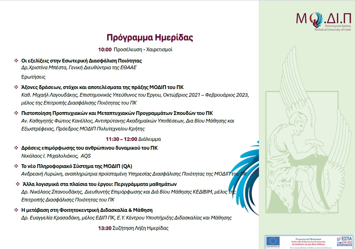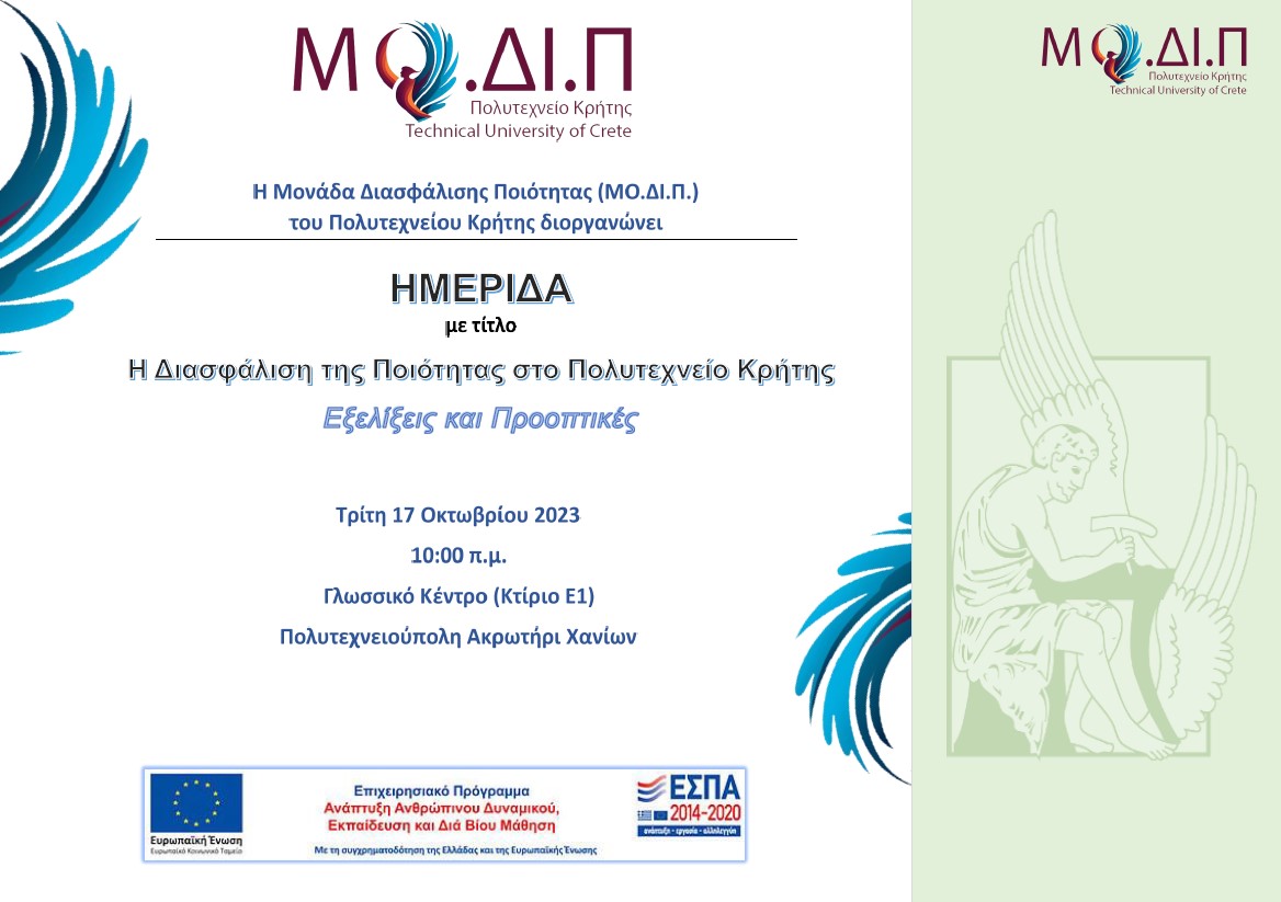 Η Μονάδα Διασφάλισης Ποιότητας του Πολυτεχνείου Κρήτης, διοργανώνει την Ημερίδα με θέμα: