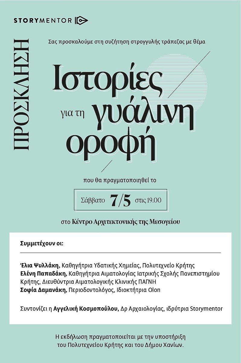Την εκδήλωση διοργανώνει η Storymentor με την υποστήριξη του Πολυτεχνείου Κρήτης και του Δήμου Χανίων.