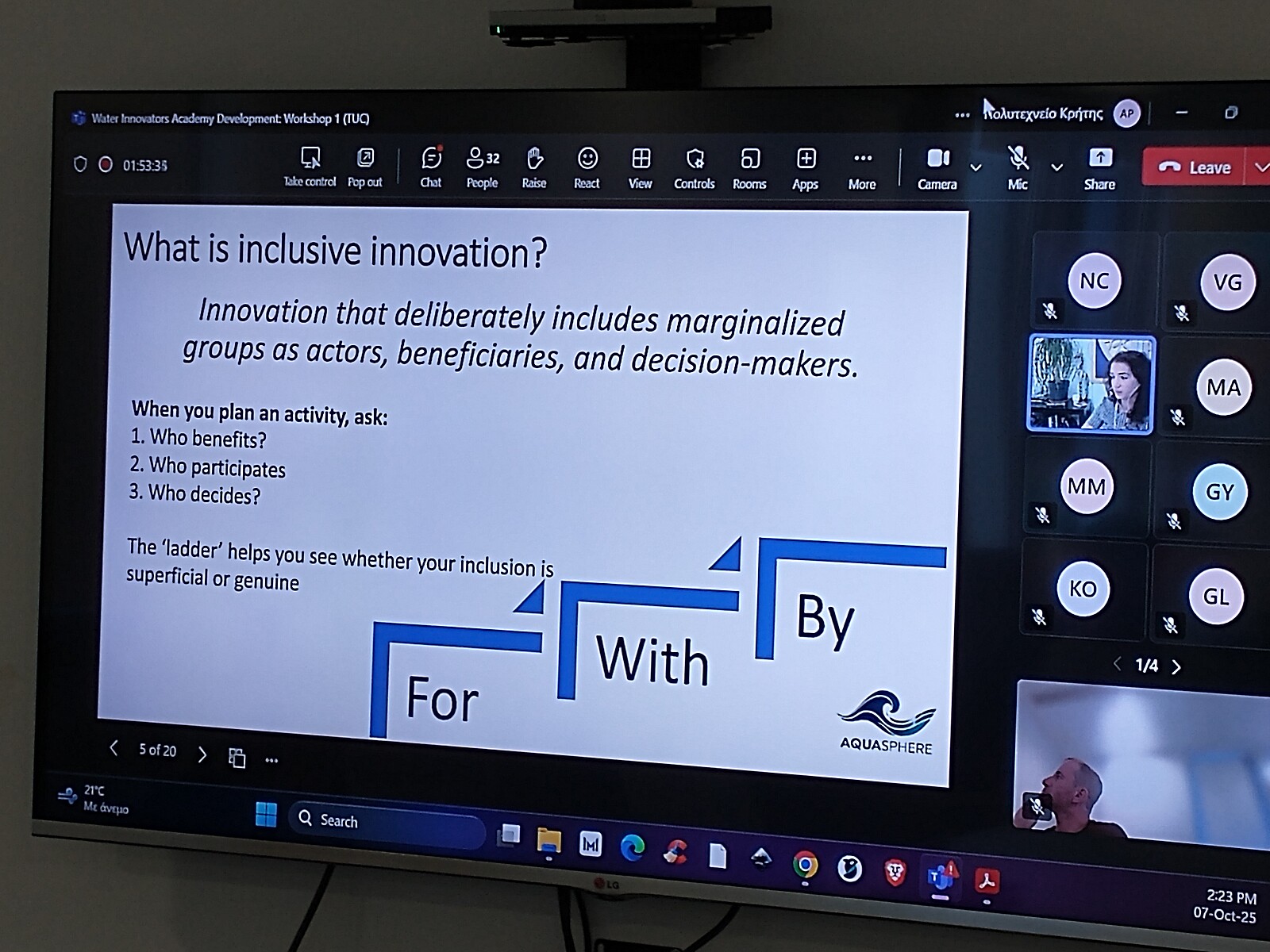 Με επιτυχία πραγματοποιήθηκε την Τρίτη 7 Οκτωβρίου 2025, το 1ο Εργαστήριο “Water Innovators Academy Development”, στο πλαίσιο του ευρωπαϊκού έργου AquaSphere, που υλοποιείται υπό τον συντονισμό του Πολυτεχνείου Κρήτης. Το εργαστήριο διεξήχθη στις εγκαταστάσεις της Σχολής Αρχιτεκτόνων Μηχανικών του Πολυτεχνείου Κρήτης με δυνατότητα παρακολούθησης και διαδικτυακά.