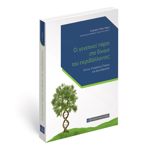 Κυκλοφορεί από τις εκδόσεις Νομική Βιβλιοθήκη το νέο βιβλίο-μονογραφία της Ευπραξίας-Αίθρας Μαριά, Αναπλ. Καθηγήτριας της Σχολής Μηχανικών Περιβάλλοντος του Πολυτεχνείου Κρήτης, με τίτλο “Οι γενετικοί πόροι στο δίκαιο του περιβάλλοντος. Έννοια, Ρυθμιστικό πλαίσιο και Διακυβέρνηση”.
