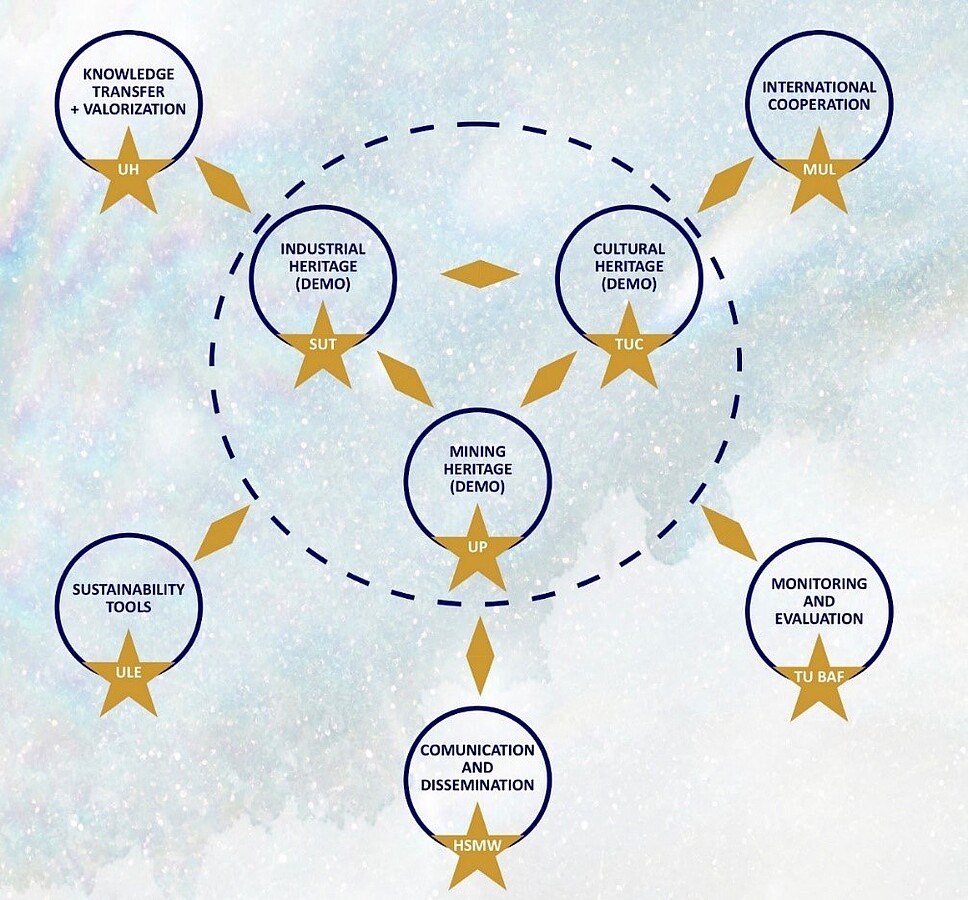 Τα συνεργαζόμενα πανεπιστήμια θα αναπτύξουν συγκεκριμένες μετρήσιμες μεθόδους, εργαλεία και διαδικασίες για τη βιωσιμότητα των υλικών κατασκευής σε μνημεία βιομηχανικής, πολιτιστικής και μεταλλευτικής κληρονομιάς.