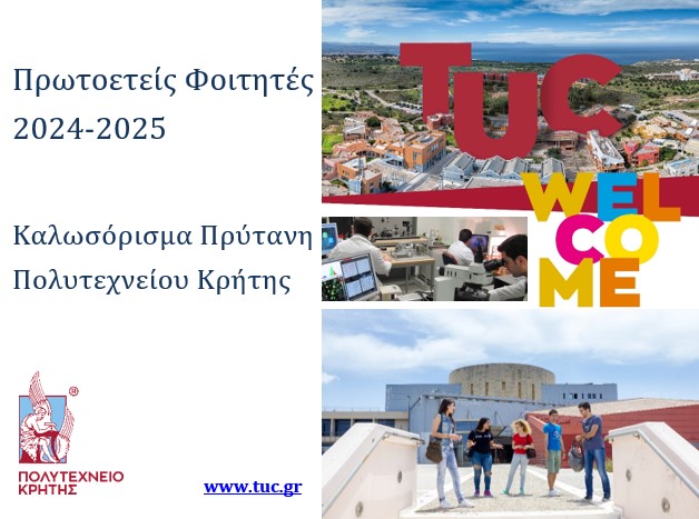 Σας καλωσορίζουμε στην ακαδημαϊκή κοινότητα του Πολυτεχνείου Κρήτης και ευχόμαστε ολόψυχα υγεία, πρόοδο και επιτυχίες στις σπουδές σας!