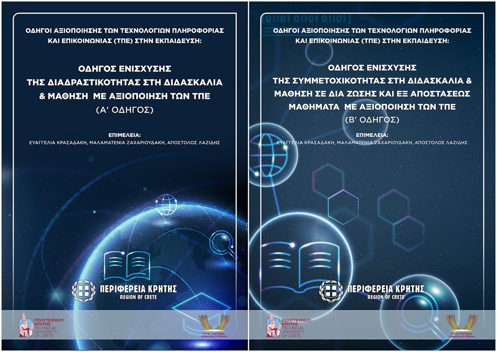 Τo Κέντρο Υποστήριξης Διδασκαλίας και Μάθησης (ΚΕΔΙΜΑ) του Πολυτεχνείου Κρήτης ανέπτυξε δύο Οδηγούς για την αξιοποίηση των Τεχνολογιών Πληροφορίας και Επικοινωνίας (ΤΠΕ) στην εκπαίδευση με την υποστήριξη της Περιφέρειας Κρήτης, έργο «Δράσεις Δια Βίου Μάθησης Περιφέρειας Κρήτης, Τ.Κ.Α. 2020ΕΠ00200035», κωδικός ΟΠΣ (MIS) 5162109.