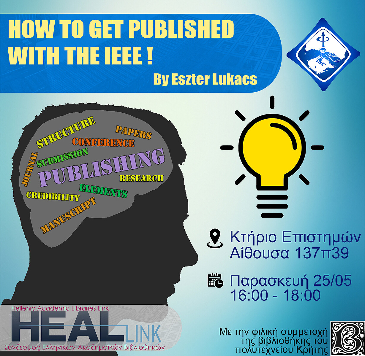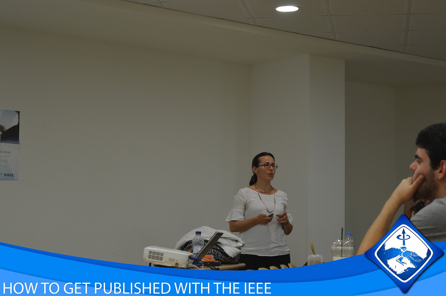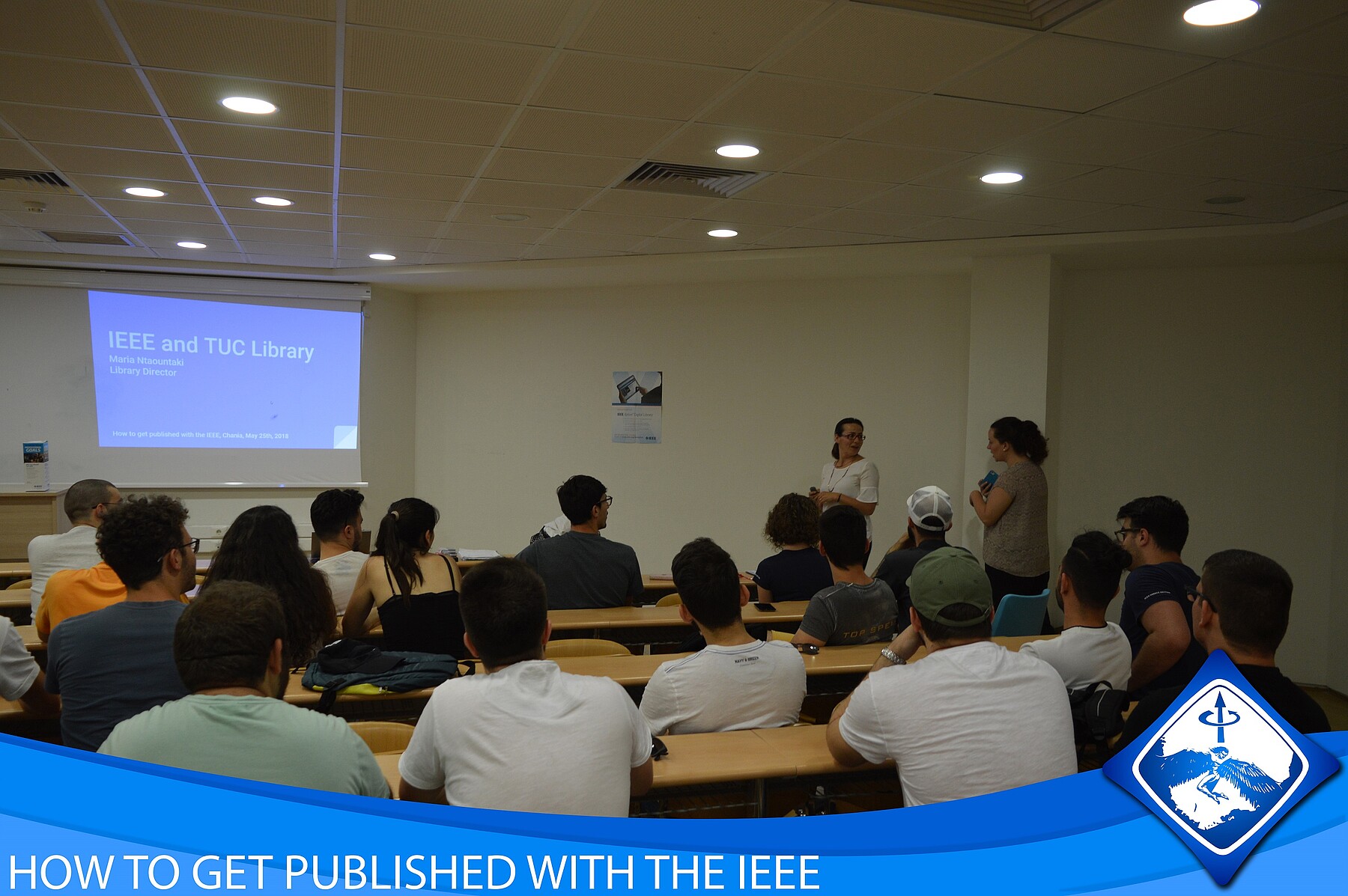 Η κ. Eszter Lukacs, μίλησε σχετικά με το πώς μπορεί κάποιος να εκμεταλλευτεί τις δυνατότητες που προσφέρονται μέσω της IEEE ώστε να προβάλει την έρευνα και τη δουλειά του μέσα από το IEEEXplore και τα συνέδρια του οργανισμού. Παράλληλα, παρουσιάστηκαν τα βήματα για την επιλογή του κατάλληλου περιοδικού ή συνεδρίου για εργασίες. Παρουσιάστηκαν επίσης τα στοιχεία και η δομή ενός άρτια γραμμένου paper, ώστε να αποφεύγονται ενδεχόμενες απορρίψεις αυτών. Η ομιλία πραγματοποιήθηκε με την συμμετοχή της κας Μαρίας Νταουντάκη που μίλησε για τη συνεργασία ανάμεσα στην ΙΕΕΕ και τη Βιβλιοθήκη του Πολυτεχνείου Κρήτης. Στην εκδήλωση συμμετείχαν φοιτητές της Σχολής ΗΜΜΥ (προπτυχιακοί, μεταπτυχιακοί φοιτητές και υποψήφιοι διδάκτορες), οι οποίοι είχαν την ευκαιρία να μάθουν και να ρωτήσουν για θέματα που αφορούσαν τόσο την εύρεση πληροφοριών όσο και την κατάλληλη παράθεση ιδεών σε επιστημονικής κλίμακας περιοδικά και συνέδρια.