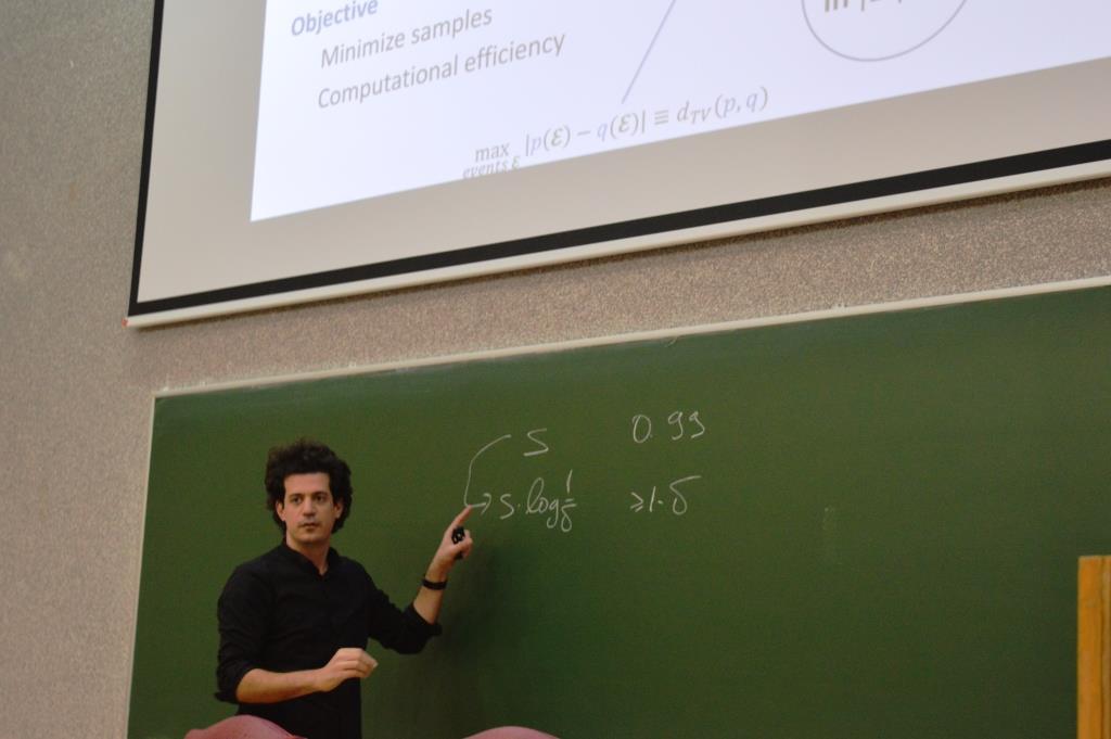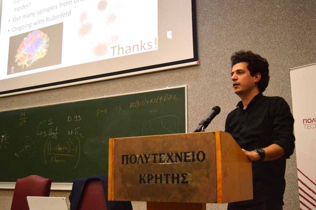 Περίληψη ομιλίας: Given samples from an unknown distribution p, is it possible to distinguish whether p belongs to some class of distributions C versus p being far from every distribution in C by some margin? This fundamental question has received extensive study in Statistics, Computer Science and several other fields. Still, even for basic classes of distributions such as unimodal, log-concave, or product the optimal sample complexity is unknown. We provide optimal testers for these and other families. In the process we strengthen the exchangeable pairs framework of [Chatterjee 2005].