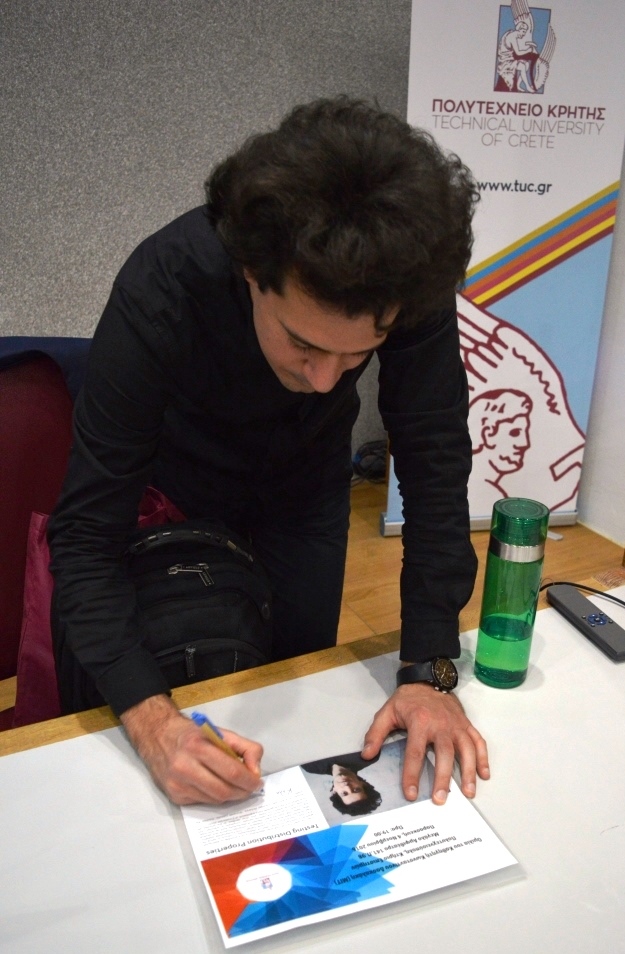 Την Παρασκευή 4/11/2016, το Πολυτεχνείο Κρήτης είχε την τιμή να φιλοξενήσει τον Κωνσταντίνο Δασκαλάκη σε ανοιχτή ομιλία που δόθηκε από τον Καθηγητή, στην Πολυτεχνειούπολη.