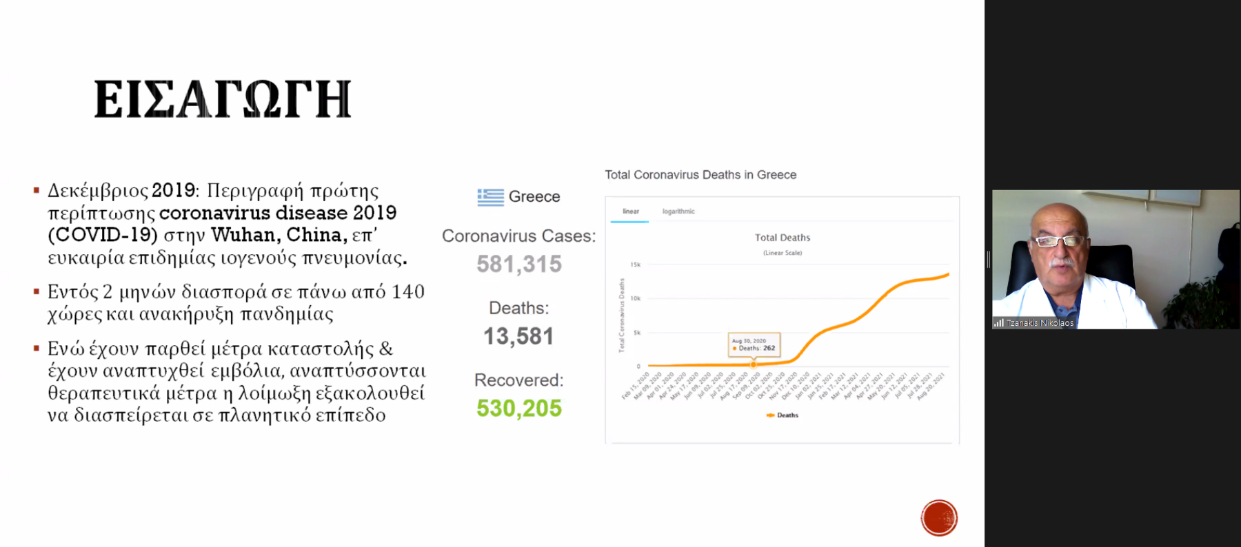 Στην ομιλία του ο Δρ. Τζανάκης παρουσίασε πληροφορίες για την προέλευση του κορονοϊού, την επιδημιολογία, έδωσε στατιστικά στοιχεία, μίλησε για τα μακροπρόθεσμα συμπτώματα, τη μεταδοτικότητα και τους υπερ-μεταδότες, την ΑBC (Αlways Be Careful) συμπεριφορά για αποφυγή μετάδοσης, τις μεταλλάξεις. Αναφέρθηκε στις βραχυχρόνιες προβλέψεις και έκλεισε την ομιλία του με το θέμα των εμβολίων και του εμβολιασμού.