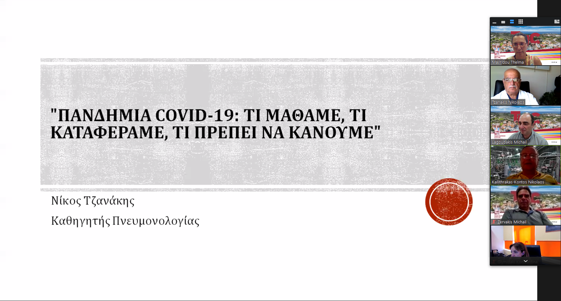 Με περισσότερους από 140 συμμετέχοντες, μέλη του διδακτικού, επιστημονικού, εργαστηριακού, διοικητικού προσωπικού, φοιτήτριες και φοιτητές του Πολυτεχνείου Κρήτης, πραγματοποιήθηκε η διαδικτυακή ενημερωτική εκδήλωση με τίτλο «Πανδημία COVID-19: τι μάθαμε, τι καταφέραμε, τι πρέπει να κάνουμε».