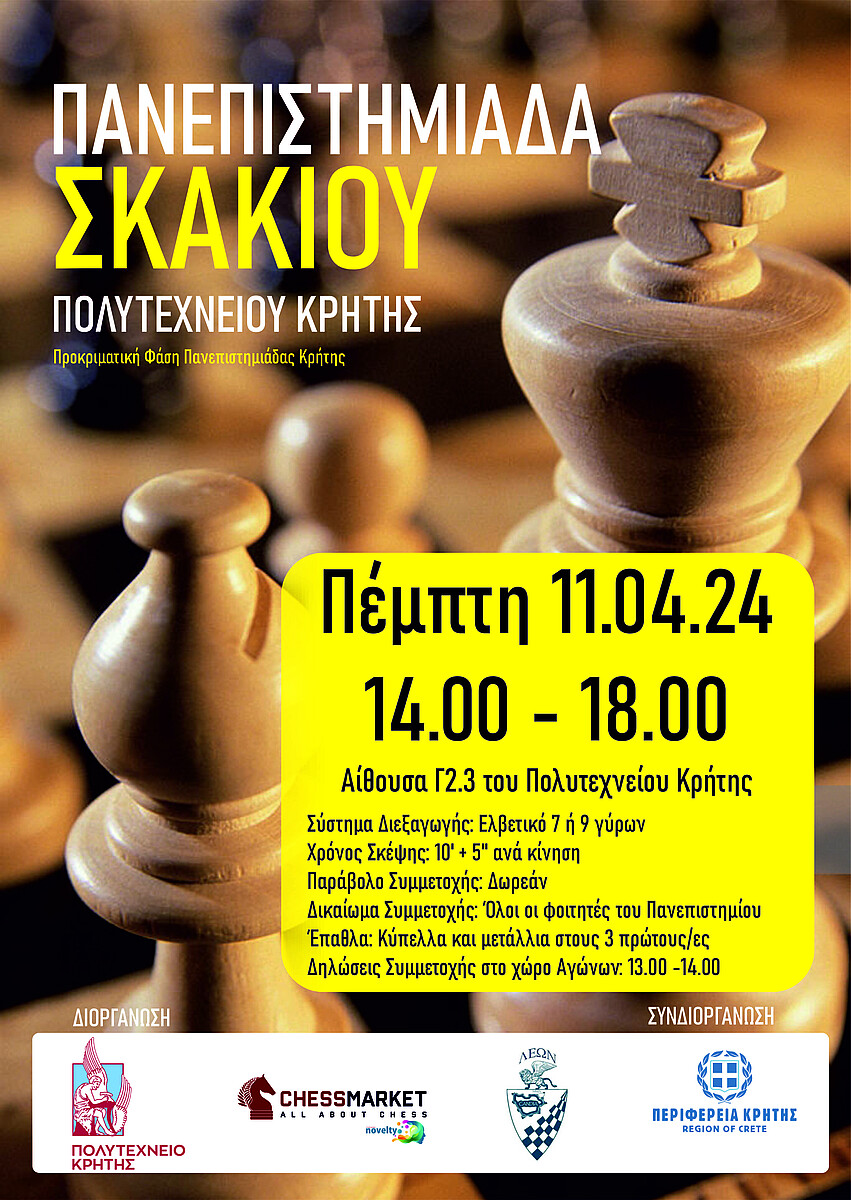 - Προκήρυξη Προκριματικής Φάσης Σκακιστικής Πανεπιστημιάδας Κρήτης 2024