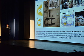 Στη συνέχεια ακολούθησε το κύριο μέρος της εκδήλωσης με την παρουσίαση της κας Μοροπούλου, η οποία «μετέφερε» και «ξενάγησε» το κοινό στο συγκλονιστικό έργο της αποκατάστασης και αναστήλωσης του μοναδικού, για τη Χριστιανοσύνη, ταφικού μνημείου. Η κ. Μοροπούλου μιλώντας για το έργο αναφέρει: "Στις 26 Οκτωβρίου 2016, ανοίξαμε τον Πανάγιο Τάφο, επτά αιώνες μετά από την καταστροφή του από τους Μαμελούκους Τούρκους. Ομολογώ ότι η πρόκληση για εμάς ήταν το λιγότερο τεχνική. Ήταν, ένα μνημείο ζωντανό, ένα μνημείο που μας μιλούσε, νιώθαμε την ενέργειά του. Αυτή, είναι μία εμπειρία που ζήσαμε μαζί με δύο δισεκατομμύρια ανθρώπους σε όλο τον κόσμο, όπου μετέδιδε εικόνες το National Geographic....Mαζί με το έργο προσφέραμε και την μελέτη του υπόγειου χώρου στις τρεις Χριστιανικές Κοινότητες, για να μπορούν με οποιονδήποτε τρόπο θέλουν να συνεχίσουν το έργο. Γιατί το έργο πρέπει να επεκταθεί στο χώρο του Ναού της Αναστάσεως για να μπορεί να ταξιδέψει στους αιώνες."