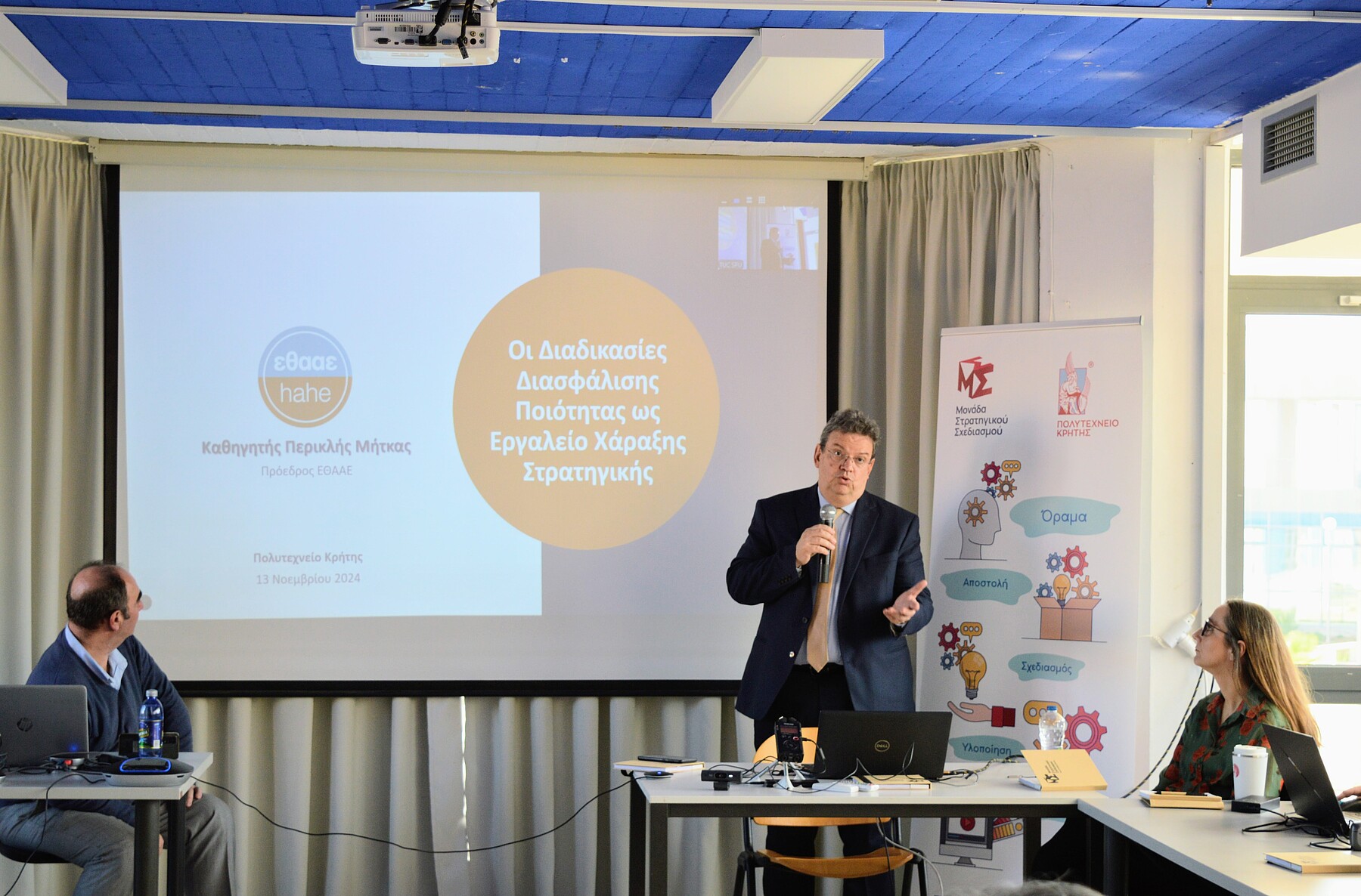 Εξαιρετικά ενδιαφέρουσα ήταν η παρουσίαση του Καθηγητή Περικλή Α. Μήτκα, Προέδρου της Εθνικής Αρχής Ανώτατης Εκπαίδευσης, πρώην Πρύτανη του Αριστοτελείου Πανεπιστημίου Θεσσαλονίκης και Καθηγητή του Τμήματος Ηλεκτρολόγων Μηχανικών και Μηχανικών Υπολογιστών της Πολυτεχνικής Σχολής του ΑΠΘ, ο οποίος ανέλυσε τις «Διαδικασίες Διασφάλισης Ποιότητας ως Εργαλείο Χάραξης Στρατηγικής».