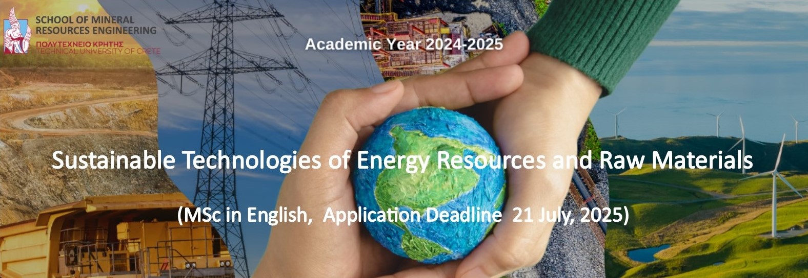 Η Σχολή Μηχανικών Ορυκτών Πόρων του Πολυτεχνείου Κρήτης προσφέρει το ξενόγλωσσο Πρόγραμμα Μεταπτυχιακών Σπουδών με τίτλο «Sustainable Technologies of Energy Resources and Raw Materials (Βιώσιμες Τεχνολογίες Ενεργειακών Πόρων και Πρώτων Υλών)» και καλεί τους ενδιαφερόμενους υποψήφιους μεταπτυχιακούς φοιτητές/φοιτήτριες να υποβάλουν την αίτηση και τα απαραίτητα δικαιολογητικά ηλεκτρονικά έως και 24 Αυγούστου 2025.