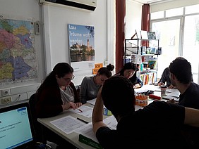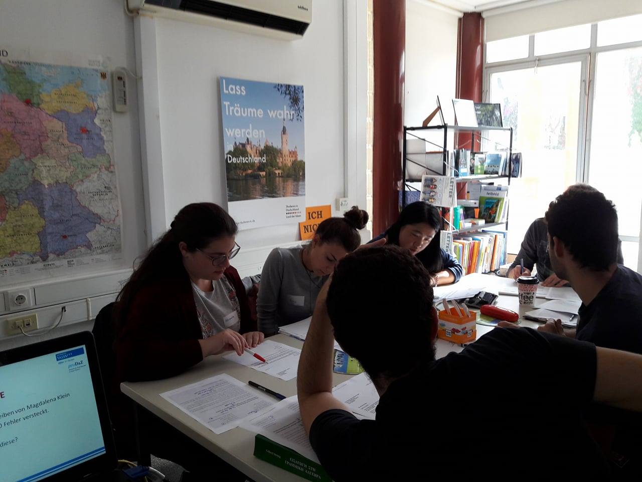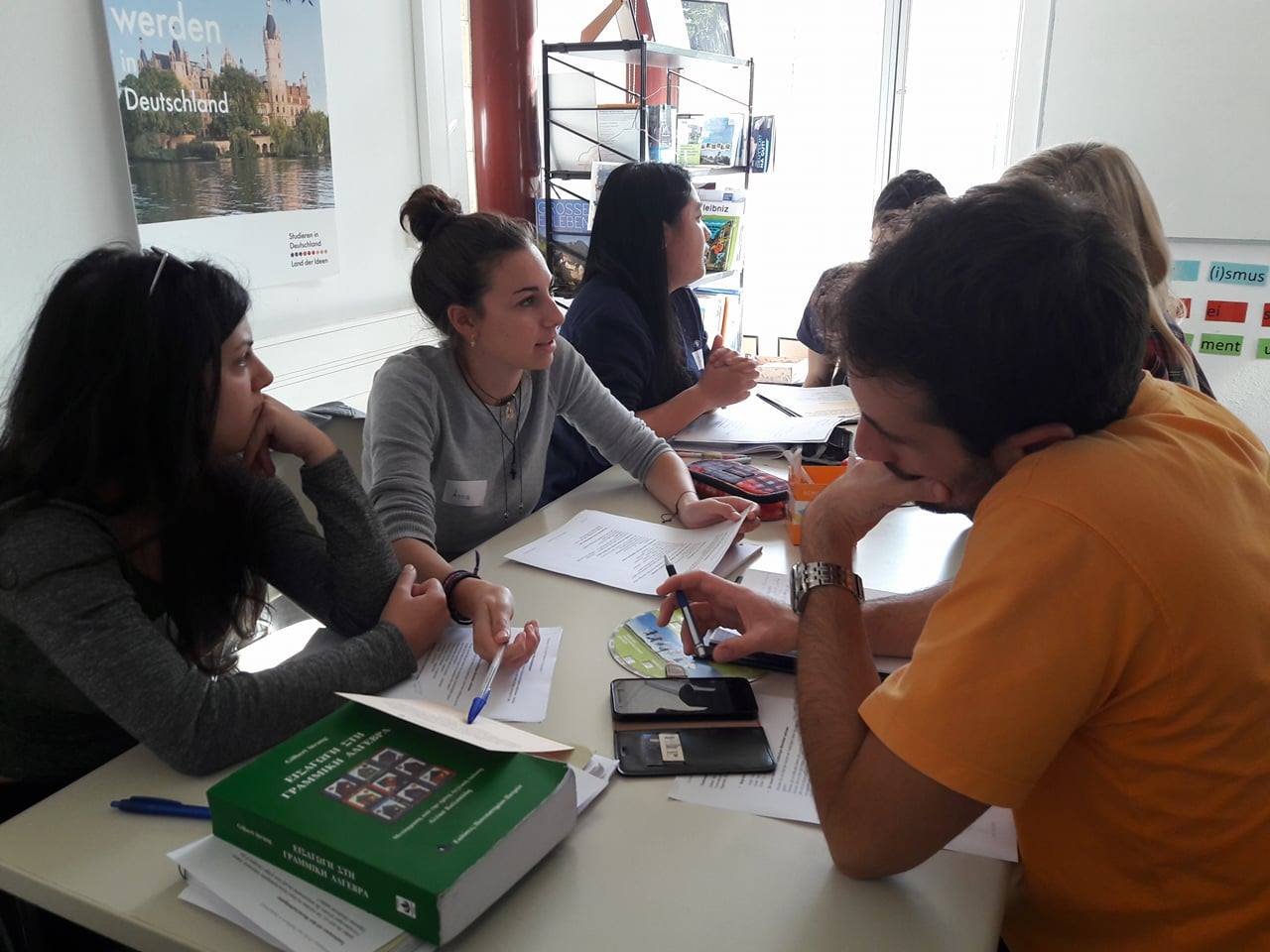 Στόχος του εργαστηρίου ήταν η σωστή προσέγγιση μίας θέσης πρακτικής άσκησης στη Γερμανία τόσο σε πρακτικό όσο και σε γλωσσικό επίπεδο. Ειδικά δομημένες ασκήσεις για την ενδυνάμωση της ομάδας αποτέλεσαν το πρώτο μέρος. Στη συνέχεια τέθηκαν και απαντήθηκαν ερωτήματα όπως “Πώς αναζητάω μία θέση πρακτικής άσκησης ανάλογη του τομέα σπουδών μου?”, “Τί ακριβώς θα πρέπει να προσέξω στην επικοινωνία?”, “Πώς προετοιμάζω βήμα προς βήμα την αίτηση?”. Στο τρίτο μέρος ακολούθησαν πρακτικές ασκήσεις, προσομοιώσεις αλλά και ασκήσεις δημιουργικής γραφής ώστε οι συμμετέχοντες φοιτητές να εξασκηθούν στο απαραίτητο λεξιλόγιο και στις στρατηγικές παραγωγής προφορικού και γραπτού λόγου.
