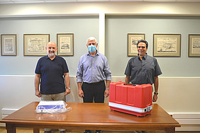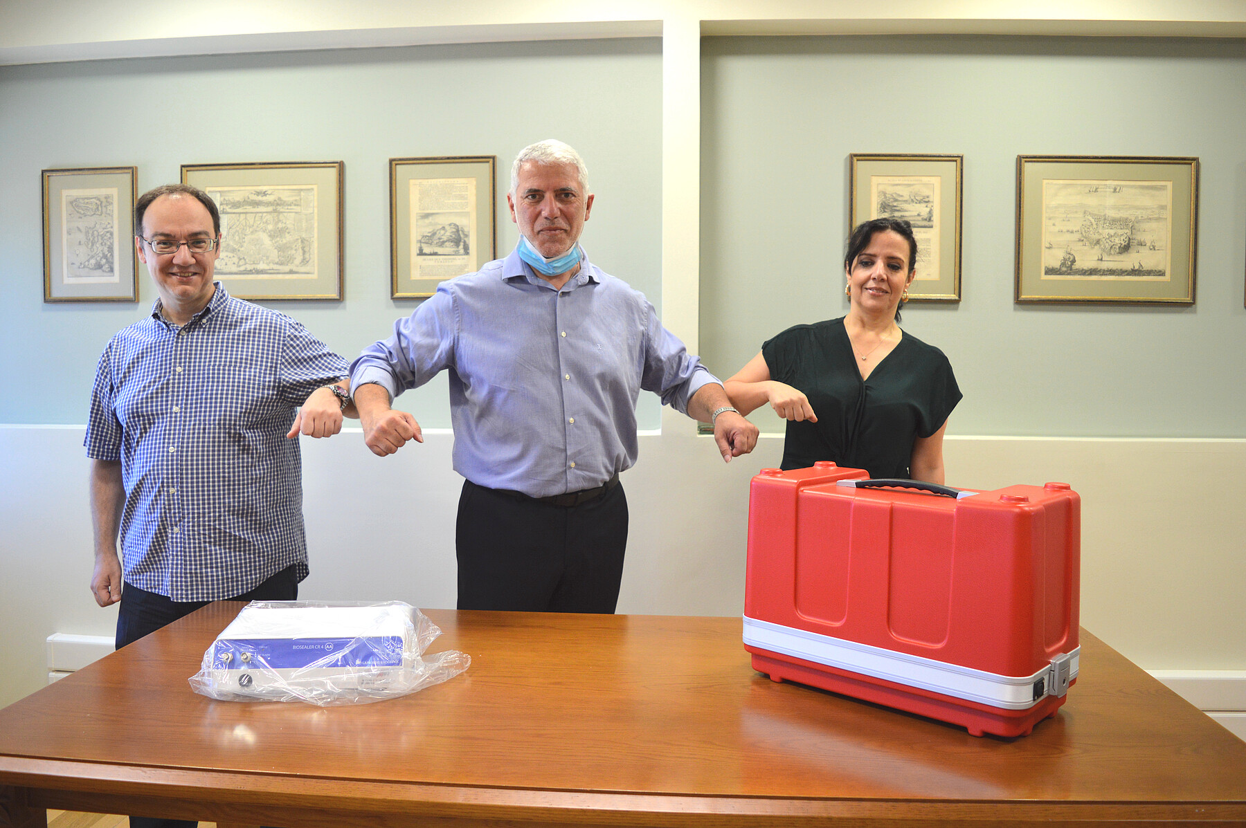 Οι δύο συσκευές παραδόθηκαν σήμερα, 25.06.2020, στον Διοικητή του ΓΝΧ Γεώργιο Μπέα, από τον Πρόεδρο του Συλλόγου και Καθηγητή της Σχολής ΗΜΜΥ Γεώργιο Καρυστινό και την Γραμματέα του Συλλόγου, Αναπλ. Καθηγήτρια της Σχολής Αρχιτεκτόνων Μηχανικών Δέσποινα Διμέλλη. Παρόντες στην παράδοση του εξοπλισμού ήταν ο Πρύτανης Καθηγητής Ευάγγελος Διαμαντόπουλος και ο Αντιπρύτανης Kαθηγητής Μιχαήλ Ζερβάκης, καθώς και η Μαρία Πετραντωνάκη, υπεύθυνη δημοσίων σχέσεων επιτροπής δωρεών του ΓΝΧ.