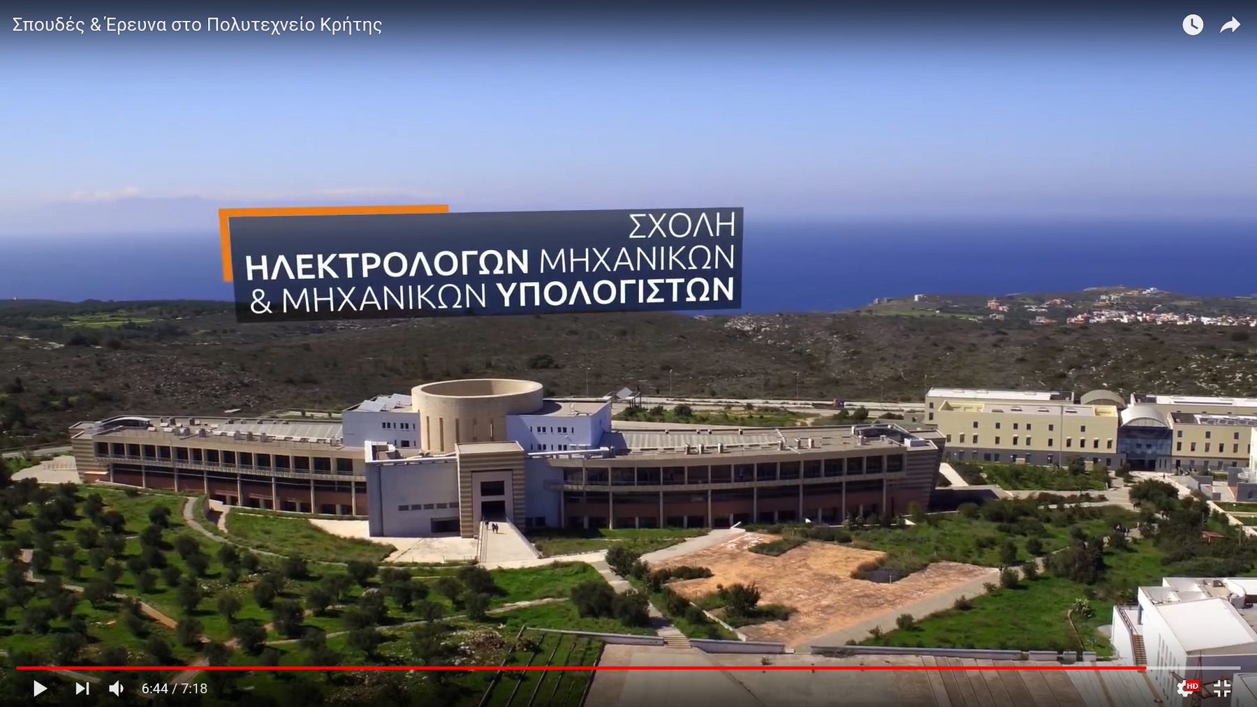 - Μία ομιλία στο πεδίο της έρευνάς του, που διαφημίζεται στο Πολυτεχνείο Κρήτης και παρακολουθείται από μέλη ΔΕΠ και φοιτητές.