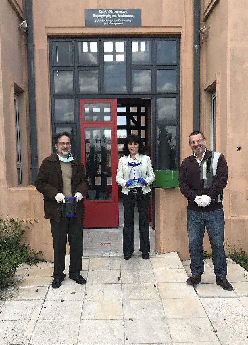 Παραδόθηκαν 40 προσωπίδες στους εκπροσώπους του Συλλόγου Εργαζομένων του Εθνικού Κέντρου Άμεσης Βοήθειας (ΕΚΑΒ) Χανίων κ.κ. Νεκτάριο Παπουδάκη (Πρόεδρο) και Εμμανουήλ Κατσανεβάκη, ενώ για τις ανάγκες των δομών πρόνοιας του Δήμου Ρεθύμνης, παραδόθηκαν άλλες 20 προσωπίδες στην κα. Άννα Ελευθεριάδου-Γκίκα, Αντιδήμαρχο Παιδείας, Διά Βίου Μάθησης και Κοινωνικής πολιτικής. Τις παράδοσεις έκαναν στην Πολυτεχνειούπολη, ο Πρύτανης Καθ. Ευάγγελος Διαμαντόπουλος και ο Καθ. Νικόλαος Τσουρβελούδης, Κοσμήτορας της Σχολής Μηχανικών Παραγωγής και Διοίκησης και Διευθυντής του Εργαστηρίου Ευφυών Συστημάτων και Ρομποτικής.