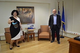Εκ μέρους της Περιφερειακής Ενότητας Χανίων, η κα Σοφία Μαλανδράκη-Κρασουδάκη, εντεταλμένη σύμβουλος Υγείας, Παιδείας και Πολιτισμού και ο κ. Δημήτριος Νικολακάκης, Προϊστάμενος Διεύθυνσης Δημόσιας Υγείας και Κοινωνικής Μέριμνας, παρέλαβαν 6 προσωπίδες για να καλύψουν μέρος των αναγκών των υπηρεσιών τους. Οι εκπρόσωποι της ΠΕ Χανίων, αφού ευχαρίστησαν θερμά, δήλωσαν ότι: "Το Πολυτεχνείο Κρήτης διαπρέπει εδώ και καιρό στον τομέα της έρευνας και της καινοτομίας και η Περιφέρεια Κρήτης είναι σταθερά δίπλα στους επιστήμονες και θα παραμείνει αρωγός στα Ανώτατα Εκπαιδευτικά Ιδρύματα του νησιού".