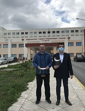 Παραδόθηκαν συνολικά 35 προσωπίδες στον Πρόεδρο του Οδοντιατρικού Συλλόγου Χανίων κ. Νικόλαο Μπολιώτη και στην κα Ιωάννα Ν. Μπαχουντάκη, προϊσταμένη της Δ.Ο.Υ. Χανίων.