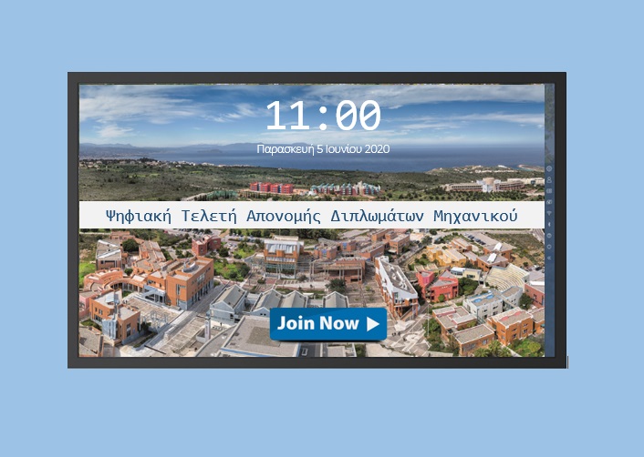 Τις επόμενες ημέρες θα υπάρξουν αναλυτικές οδηγίες για την πρώτη Ψηφιακή Τελετή Απονομής Διπλωμάτων Μηχανικού του Πολυτεχνείου Κρήτης.