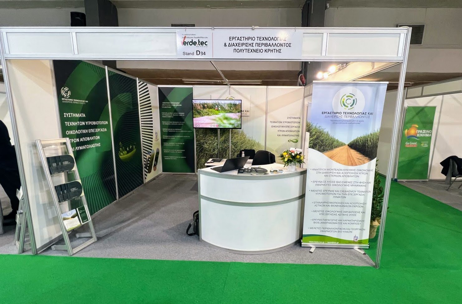 Το Εργαστήριο Τεχνολογίας και Διαχείρισης Περιβάλλοντος της Σχολής Χημικών Μηχανικών και Μηχανικών Περιβάλλοντος του Πολυτεχνείου Κρήτης με Διευθυντή τον Επ. Καθ. Αλέξανδρο Στεφανάκη συμμετέχει για πρώτη φορά στην 7η Διεθνή Έκθεση Περιβάλλοντος Verde-tec, η οποία πραγματοποιείται 21-23 Φεβρουαρίου 2025 στο εκθεσιακό κέντρο MEC Παιανίας στην Αθήνα.