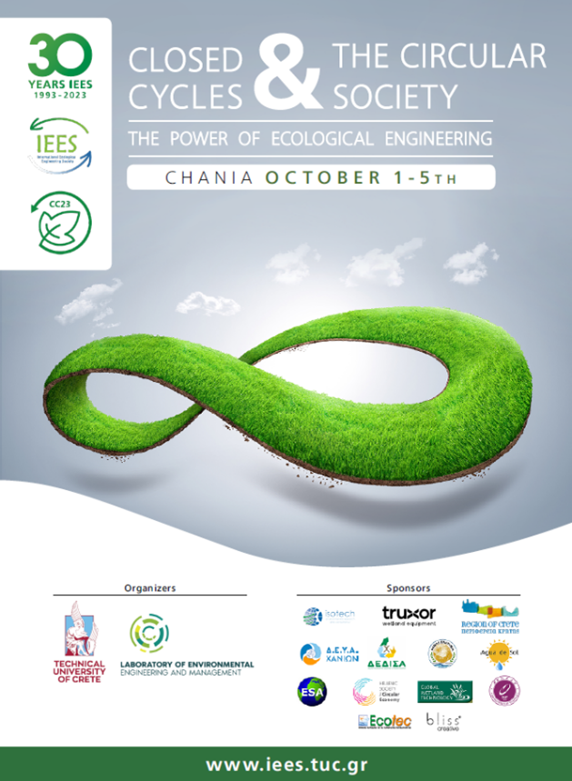 Η International Ecological Engineering Society (IEES) και το Πολυτεχνείο Κρήτης διοργανώνουν για πρώτη φορά στην Ελλάδα το Διεθνές Συνέδριο “Closed Cycles and the Circular Society 2023: The Power of Ecological Engineering” που θα διεξαχθεί στα Χανιά, 2 - 5 Οκτωβρίου 2023.