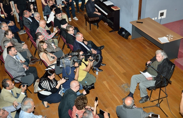 Κατά την αντιφώνησή του, που διήρκησε 40’, ο κ. Μίκης Θεοδωράκης συγκίνησε το κοινό που στην κυριολεξία «πλημμύρισε» το ΚΑΜ, ενώ ακολούθησαν και οι πιο συγκινητικές στιγμές στο τέλος της εκδήλωσης όταν ο κος Θεοδωράκης διηύθυνε τη μουσική ομάδα “passe-pARTout” αλλά και όλους τους παραβρισκόμενους, καθώς τον αποχαιρετούσαν τραγουδώντας το "Άρνηση" (Στο Περιγιάλι το κρυφό).