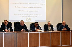 Ο κ. Χρήστος Παππούς εξήρε το τεράστιο επιστημονικό έργο του Καθ. Κ. Ζοπουνίδη και τόνισε ότι «η συνεργασία του Δήμου Φυλής με το Πανεπιστήμιο Δυτικής Αττικής και το Πολυτεχνείο Κρήτης αποτέλεσε όνειρο ζωής». Από την πλευρά του, ο Καθ. Κωνσταντίνος Ζοπουνίδης ευχαρίστησε τον κ. Χρήστο Παππού για την τιμή και ανέφερε ότι «είναι από τους ελάχιστους δημάρχους που αναλαμβάνουν την πρωτοβουλία δημιουργίας Μεταπτυχιακών Προγραμμάτων σε συνεργασία με τα Πανεπιστήμια».