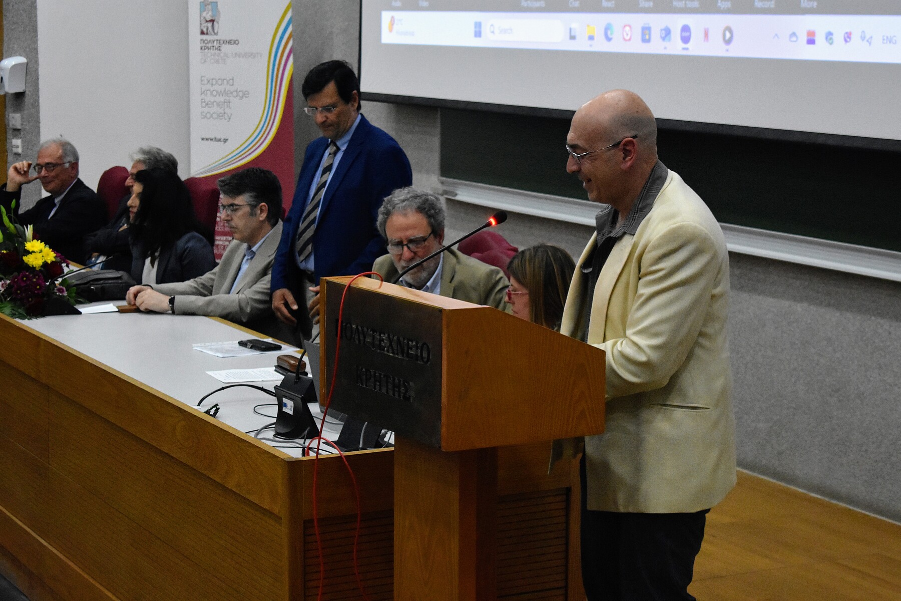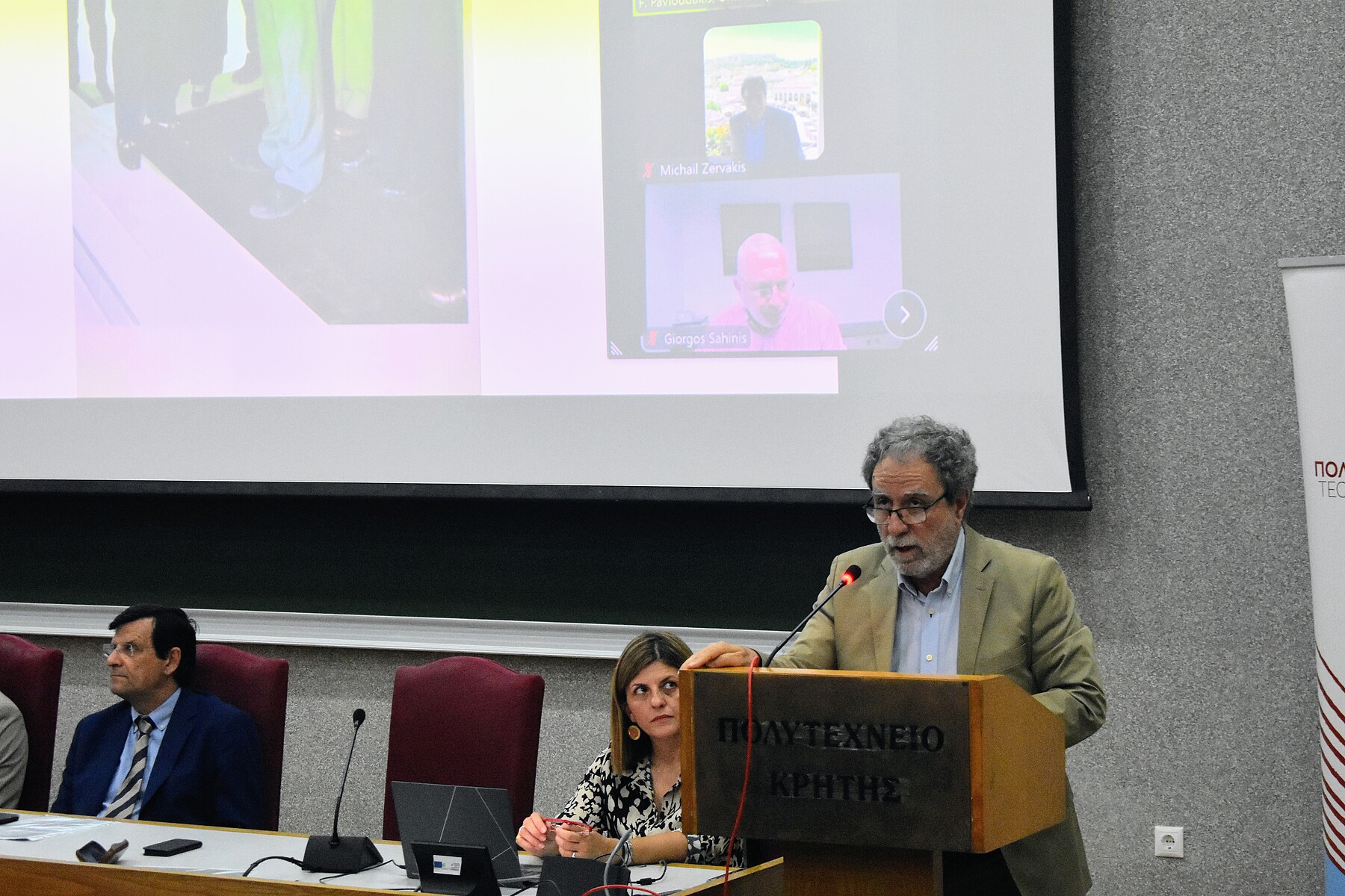 Την έναρξη της εκδήλωσης πραγματοποίησαν με χαιρετισμούς ο Πρύτανης του Πολυτεχνείου Κρήτης Καθηγητής Μιχαήλ Ζερβάκης, ο Αντιπρύτανης Ακαδημαϊκών Υποθέσεων, Διά Βίου Μάθησης και Εξωστρέφειας Αν. Καθηγητής Φώτιος Κανέλλος και ο Κοσμήτορας της Σχολής Μηχανικών Ορυκτών Πόρων Καθηγητής Εμμανουήλ Στειακάκης.