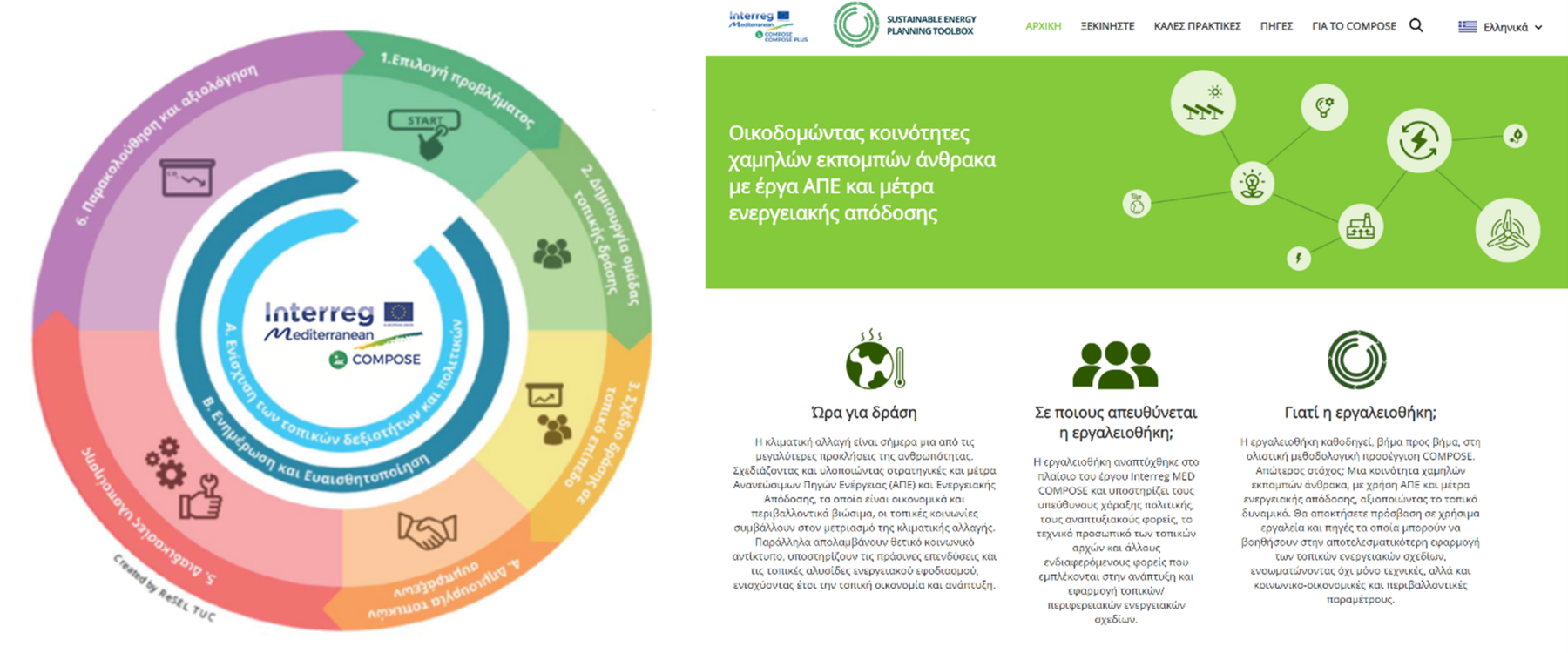 Στο COMPOSE (Νησιωτικές και αγροτικές κοινότητες με έργα θετικής ενέργειας), το οποίο συγχρηματοδοτήθηκε από το Ευρωπαϊκό Ταμείο Περιφερειακής Ανάπτυξης στο πλαίσιο του προγράμματος INTERREG MED, συνεργάστηκαν ερευνητικοί φορείς και τοπικές αρχές σε 11 μεσογειακές χώρες (Αλβανία, Βοσνία και Ερζεγοβίνη, Γαλλία, Ελλάδα, Ιταλία, Ισπανία, Κροατία, Κύπρος, Μαυροβούνιο, Πορτογαλία και Σλοβενία). Προτείνει μια ολιστική και περιεκτική προσέγγιση αναπτυξιακού σχεδιασμού που ενσωματώνει όχι μόνο τεχνικές, αλλά και κοινωνικοοικονομικές και περιβαλλοντικές παραμέτρους. Η κοινωνική αποδοχή είναι βασικός πυλώνας για την αποτελεσματική εφαρμογή των τοπικών σχεδίων. Το πρότυπο ολιστικό αναπτυξιακό μοντέλο του δοκιμάστηκε με επιτυχία στο πεδίο, με την υλοποίηση 18 καλών πρακτικών βιώσιμης ενέργειας που οδηγούν σε αποφυγή 500.000 τόνων CO2 ετησίως και με άμεσο θετικό αντίκτυπο σε 2,5 εκατομμύρια πληθυσμού, ενώ υιοθετήθηκε από 250 φορείς χάραξης πολιτικής. Οι συνεργάτες του COMPOSE επένδυσαν ιδιαίτερα στην ενίσχυση δεξιοτήτων μέσω πολυάριθμων εξατομικευμένων δραστηριοτήτων πραγματοποιώντας πάνω από 45 εργαστήρια στα οποία συμμετείχαν πάνω από πάνω από 1,100 εκπρόσωποι τοπικών/περιφερειακών αρχών.