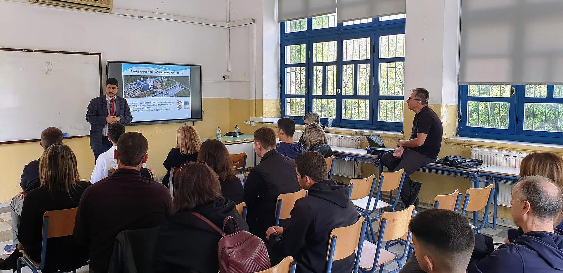 Το Πολυτεχνείο Κρήτης συμμετείχε στην Ημερίδα Προβολής των Σχολών των Πανεπιστημιακών Ιδρυμάτων της Κρήτης, που διοργάνωσε η Ένωση Φροντιστών Μέσης Εκπαίδευσης Νομού Χανίων, με την ευγενική υποστήριξη του Τμήματος Κοινωνικής Πολιτικής του Δήμου Χανίων, της Περιφέρειας Κρήτης και του Εμπορικού και Βιομηχανικού Επιμελητηρίου Χανίων, την Κυριακή 10 Νοεμβρίου 2024 στο 1ο Πειραματικό Γυμνάσιο Χανίων.