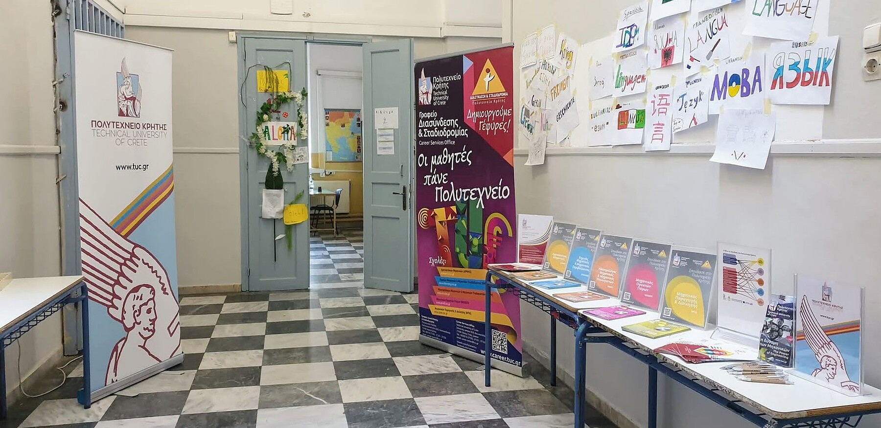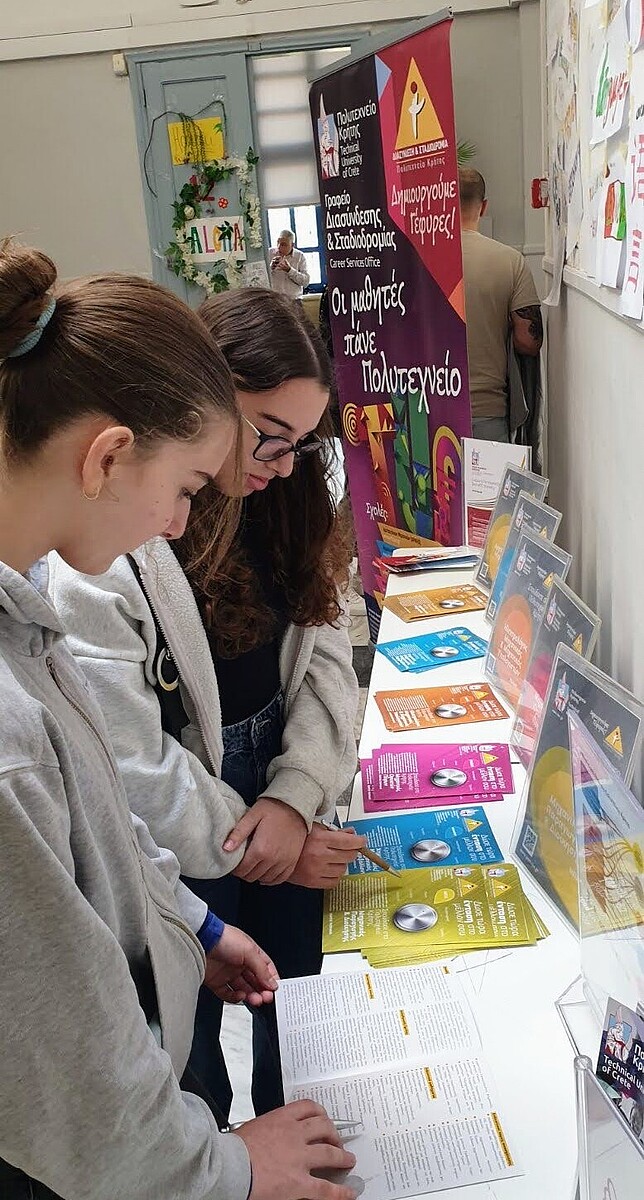 Παράλληλα, οι μαθητές είχαν τη δυνατότητα να ενημερωθούν από το Γραφείο Διασύνδεσης και Σταδιοδρομίας για τις σπουδές στο Πολυτεχνείο Κρήτης, με έντυπο ενημερωτικό υλικό, εξειδικευμένες πληροφορίες και συμβουλευτική για τις προοπτικές σπουδών Μηχανικού.