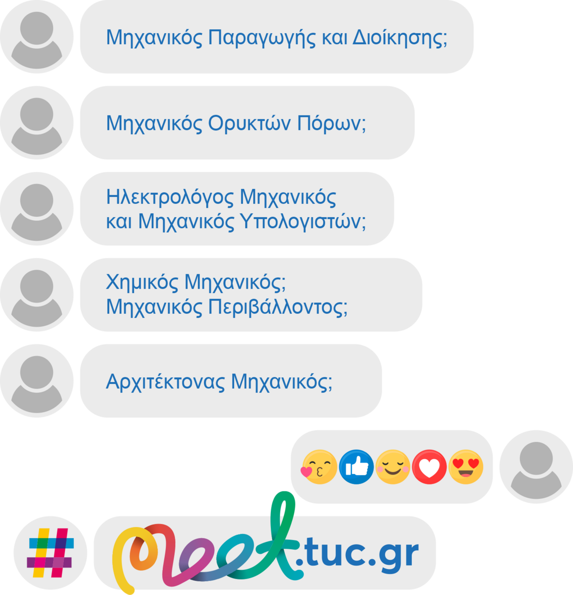 Aνακάλυψε τις ειδικότητες Μηχανικών του Πολυτεχνείου Κρήτης, γνώρισε τη φοιτητική ζωή, ρίξε μία ματιά στην Πολυτεχνειούπολη από ψηλά και εικονικά και γνώρισε τους Μηχανικούς μέσα από ζωντανές συνδέσεις με τις Σχολές και τα Εργαστήρια.