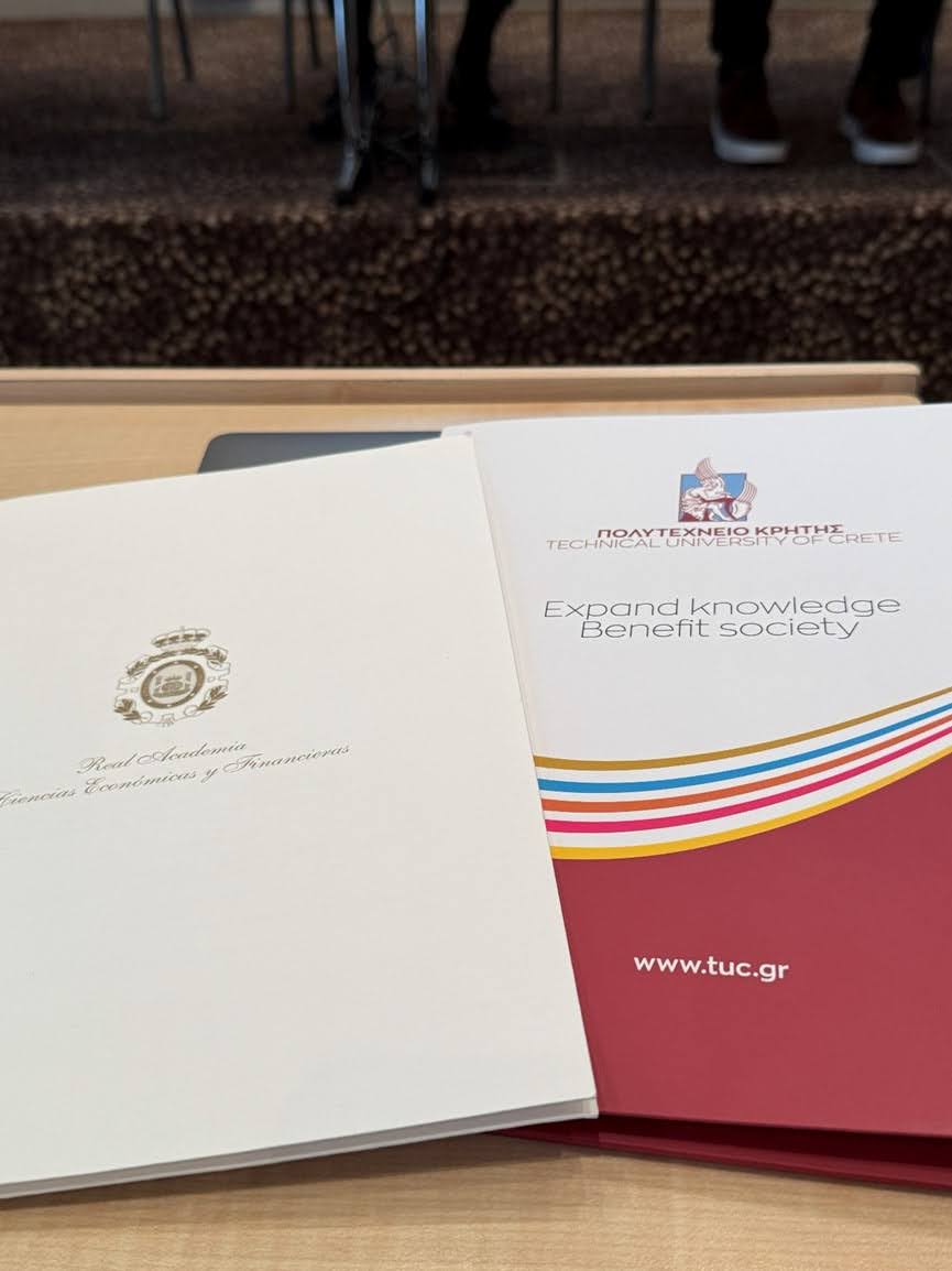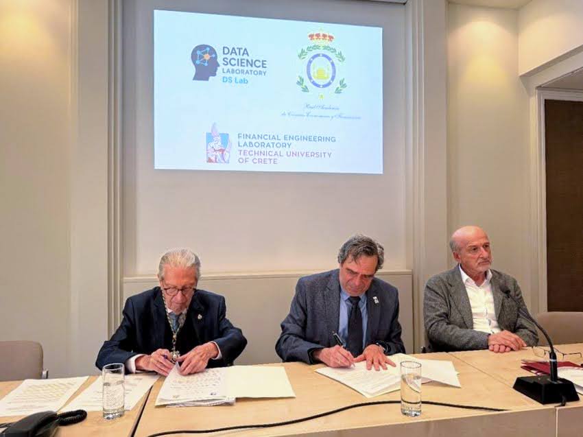 Σε ένα ιδιαίτερα σημαντικό βήμα ενίσχυσης της διεθνούς ακαδημαϊκής συνεργασίας, το Πολυτεχνείο Κρήτης και η Βασιλική Ακαδημία Οικονομικών και Χρηματοοικονομικών Επιστημών της Ισπανίας (Royal Academy of Economic and Financial Sciences – RACEF) προχώρησαν στην υπογραφή Μνημονίου Συνεργασίας, την Πέμπτη 23 Απριλίου 2026, στα Χανιά.