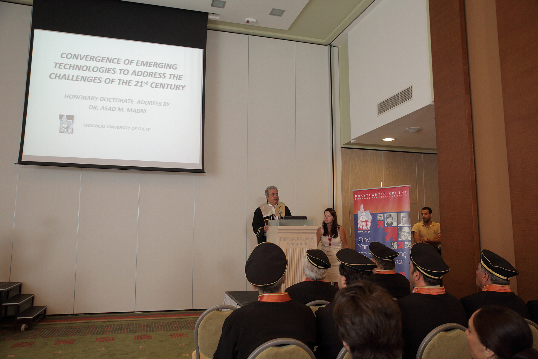 Το Πολυτεχνείο Κρήτης αναγόρευσε το διακεκριμένο Καθηγητή στον τομέα του σχεδιασμού συστημάτων και επεξεργασίας σήματος Dr. Asad Madni σε Επίτιμο Διδάκτορα του Τμήματος Μηχανικών Παραγωγής & Διοίκησης.