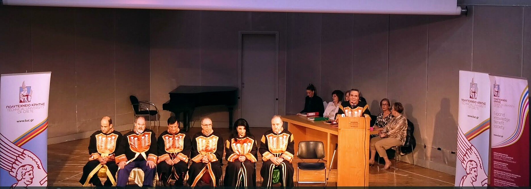 Ο Πρύτανης του Πολυτεχνείου Κρήτης Καθηγητής Μιχαήλ Ζερβάκης στην εναρκτήρια ομιλία του, αφού καλωσόρισε και συνεχάρη τόσο τους νέους αποφοίτους όσο και τις οικογένειες τους για τη συμπαράσταση, απευθυνόμενος προς τους νέους κατόχους Διδακτορικών Διπλωμάτων και Διπλωμάτων Μεταπτυχιακών Σπουδών του Πολυτεχνείου Κρήτης τόνισε: «Σας αξίζουν θερμά συγχαρητήρια, γιατί ολοκληρώσατε τις μεταπτυχιακές και διδακτορικές σπουδές σας, διεξάγοντας υψηλού επιπέδου έρευνα, που οδηγεί στην καινοτομία και στα νέα τεχνολογικά επιτεύγματα που χρειάζεται η κοινωνία. Γνωρίζω ότι αντιμετωπίσατε δυσκολίες, αλλά τα καταφέρατε με δική σας μεγάλη προσπάθεια και τη βοήθεια των καθηγητών σας που ήταν πάντα δίπλα σας καθοδηγώντας σας και δίνοντάς σας όλα τα εφόδια για να επιτύχετε. Τώρα είστε πλέον έτοιμοι να αναζητήσετε τον επαγγελματικό ή ακαδημαϊκό χώρο που επιθυμείτε και να αντιμετωπίσετε οποιαδήποτε πρόκληση, γι' αυτό μην φοβηθείτε να ακολουθείτε πάντα τα πιο τολμηρά σας όνειρα.»