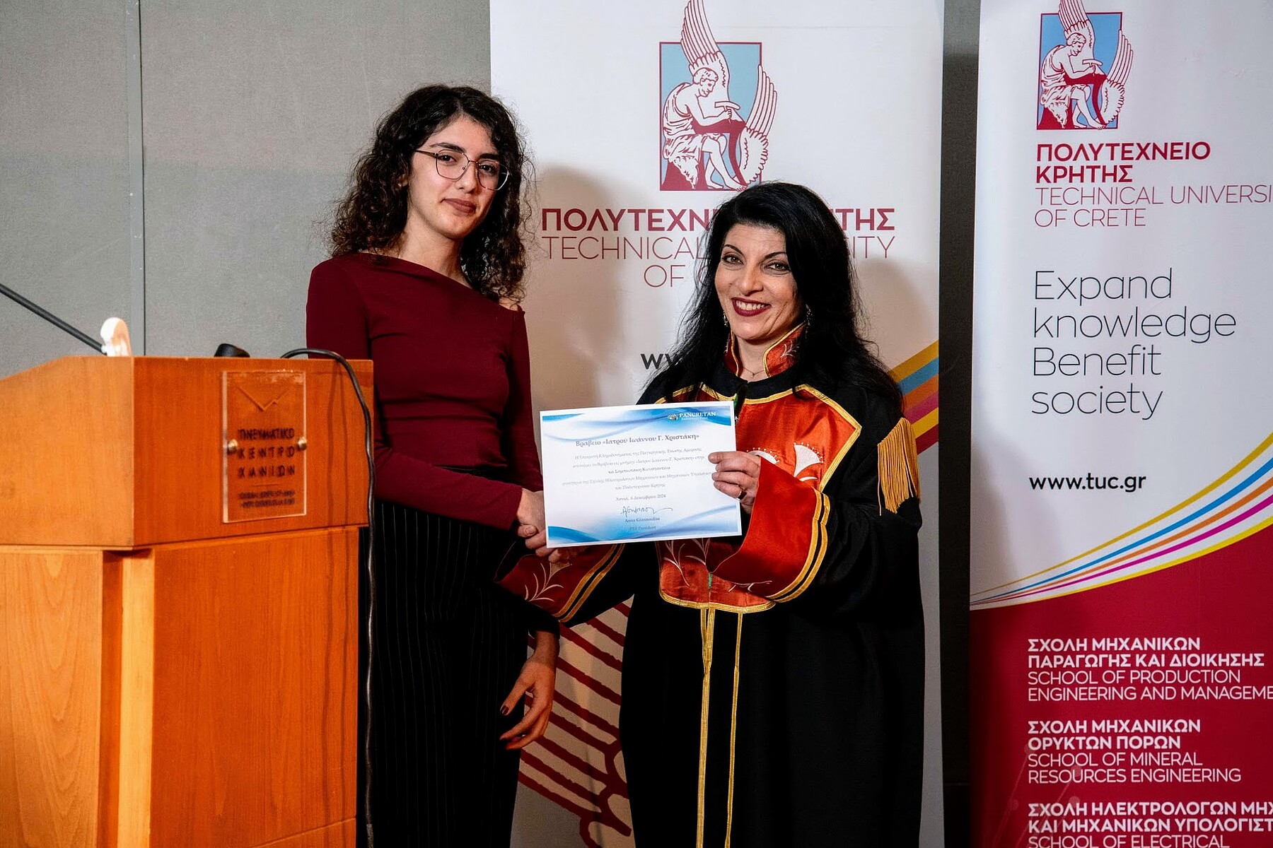 Στο πλαίσιο της Τελετής πραγματοποιήθηκαν απονομές Υποτροφιών και Βραβείων Αριστείας σε 11 φοιτητές και αποφοίτους του Πολυτεχνείου Κρήτης: