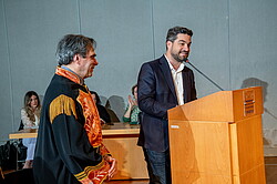 Στο πρώτο μέρος της Τελετής παρευρέθηκε και απηύθυνε χαιρετισμό ο Δήμαρχος Χανίων Παναγιώτης Σημανδηράκης, ο οποίος συνεχάρη και ευχήθηκε καλή σταδιοδρομία στους νέους Μηχανικούς του Πολυτεχνείου Κρήτης.
