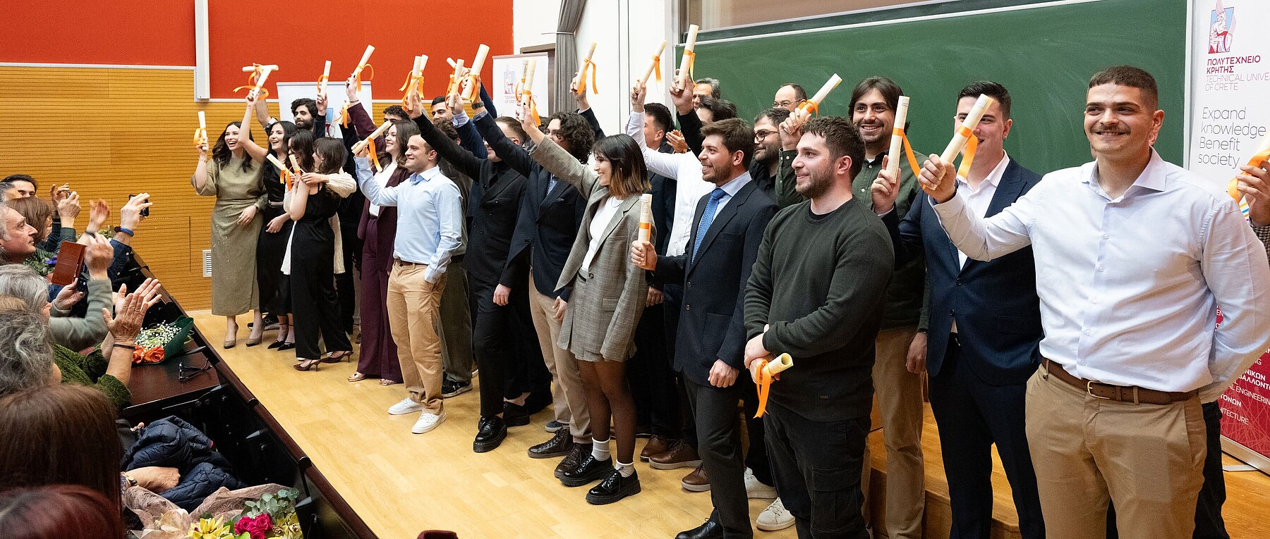 Σε πολύ ευχάριστο και εορταστικό κλίμα πραγματοποιήθηκε η Τελετή Απονομής Διπλωμάτων Μηχανικού του Πολυτεχνείου Κρήτης, την Παρασκευή 21 Μαρτίου 2025 στην Πολυτεχνειούπολη.